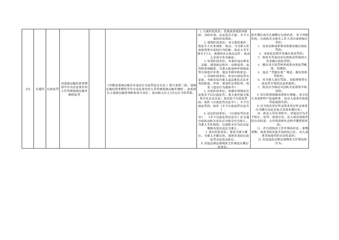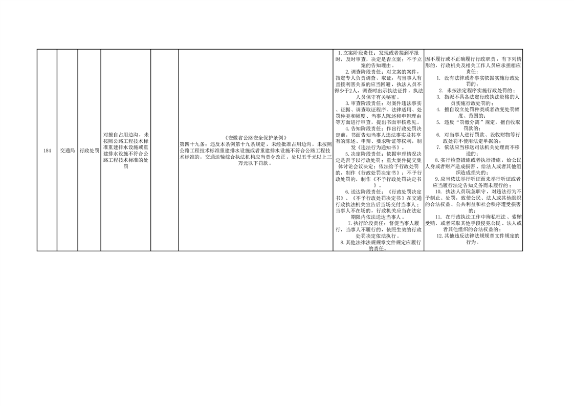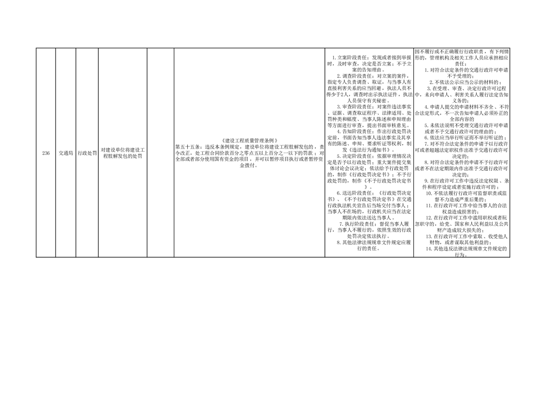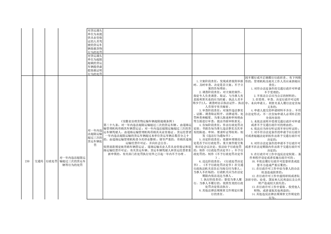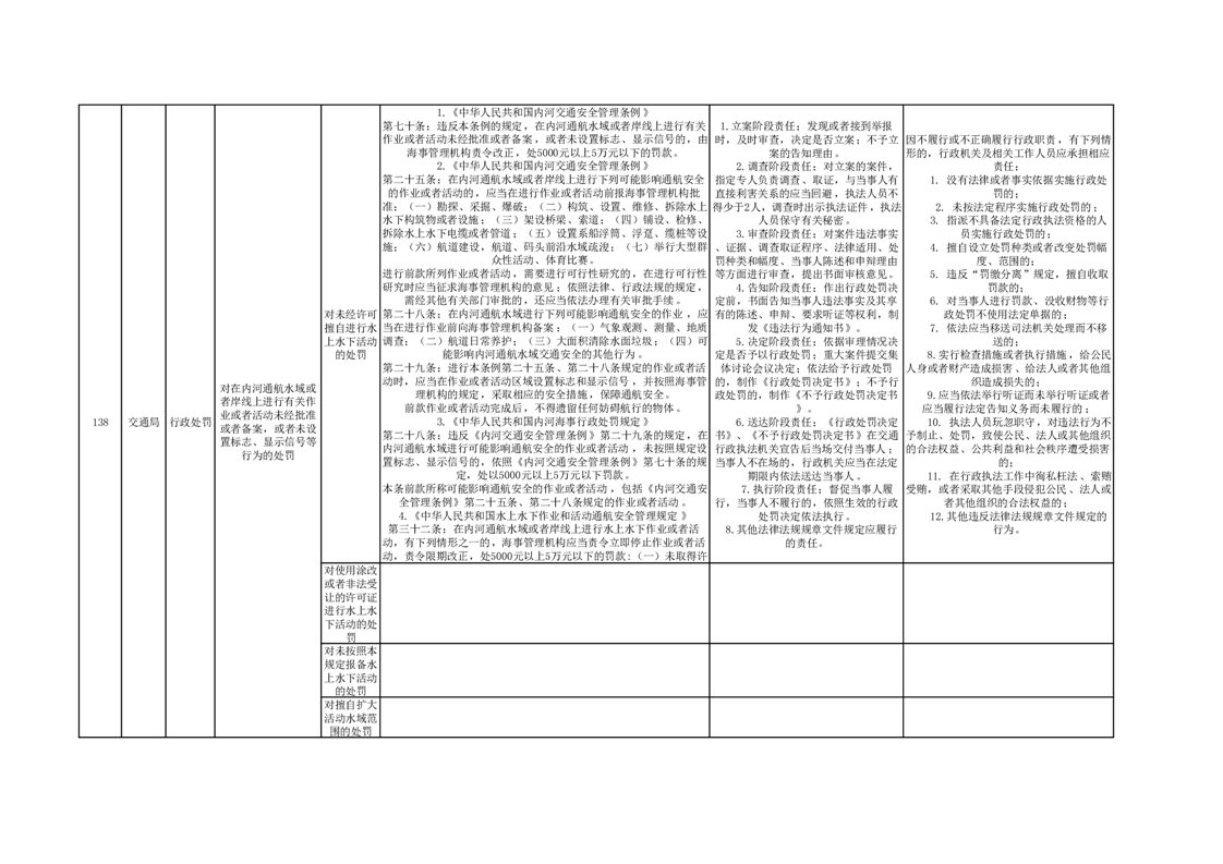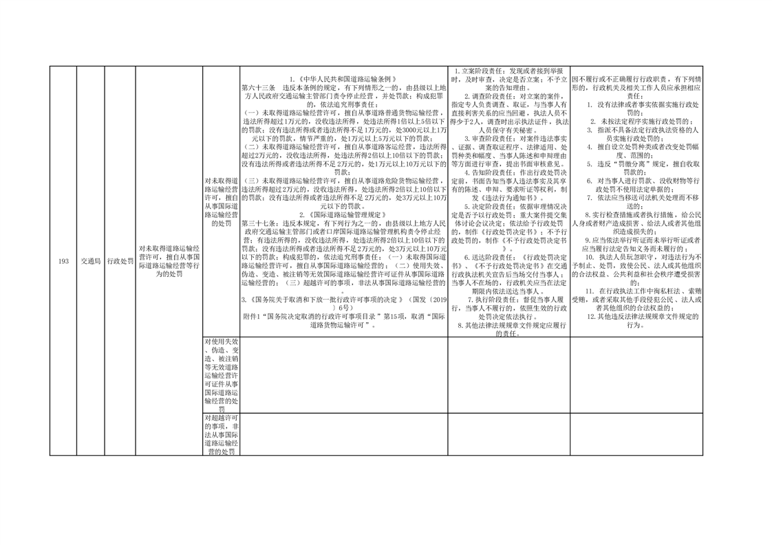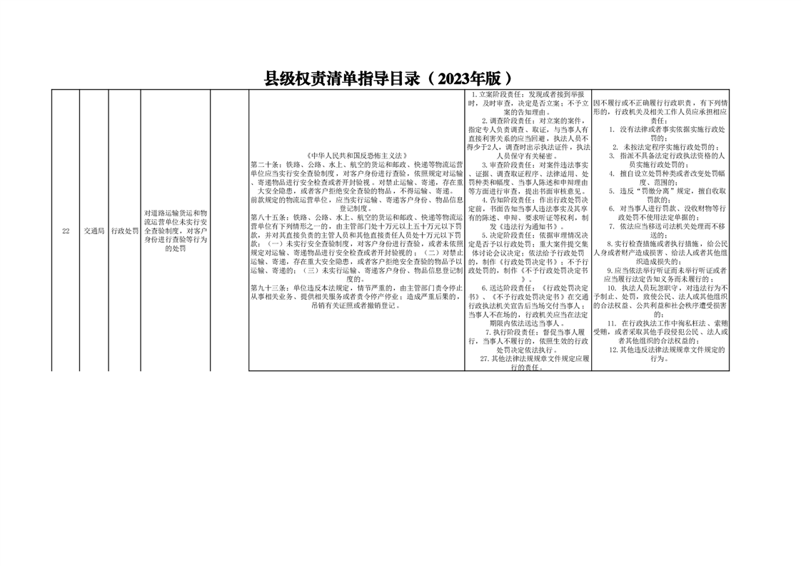 霍山县交通运输局行政处罚分目录(2023年版)