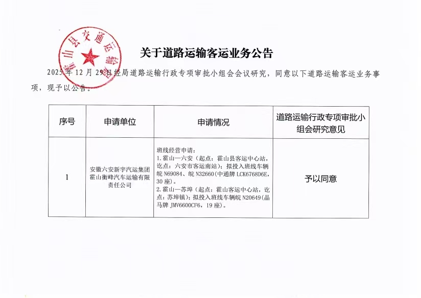 信息来源:霍山县交运局