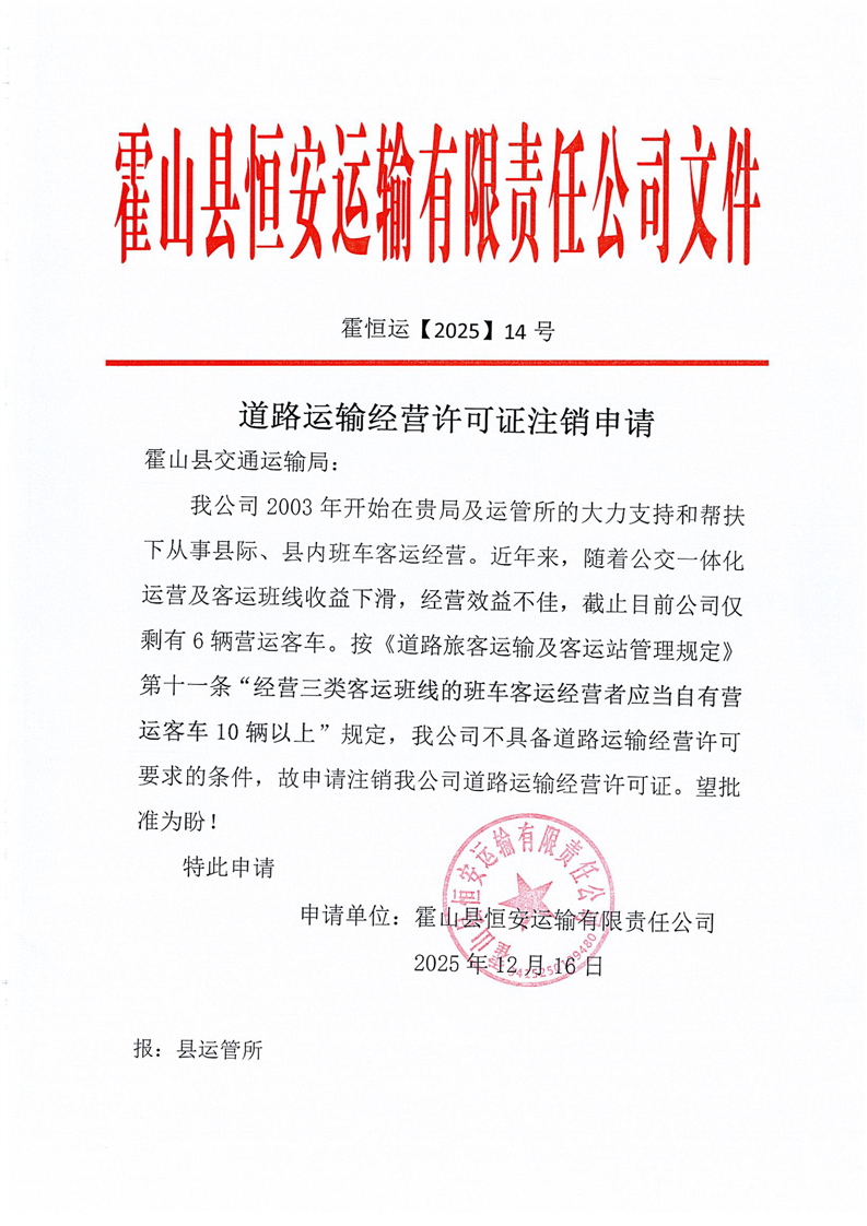 道路运输经营许可证注销申请