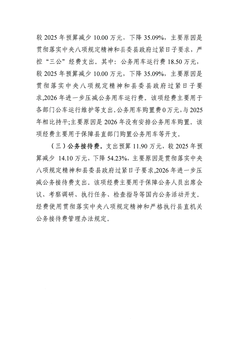 霍山县农业农村局2026年一般公共预算安排“三公”经费情况