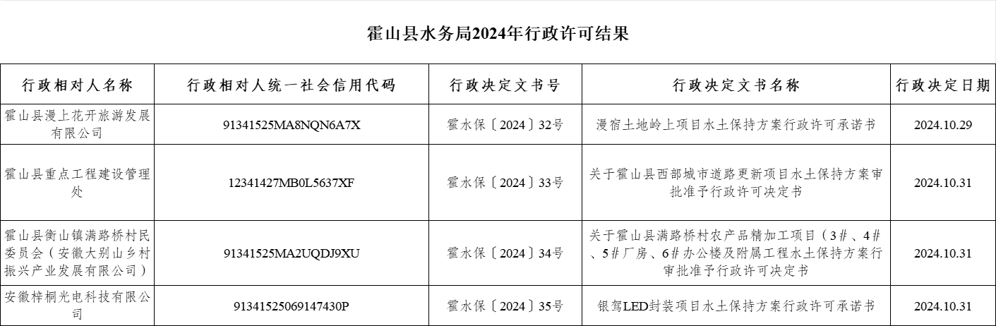 霍山县水务局2024年行政许可结果(十七)