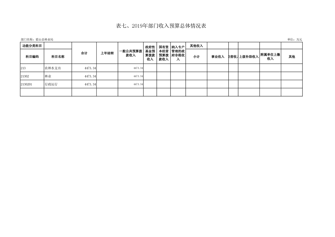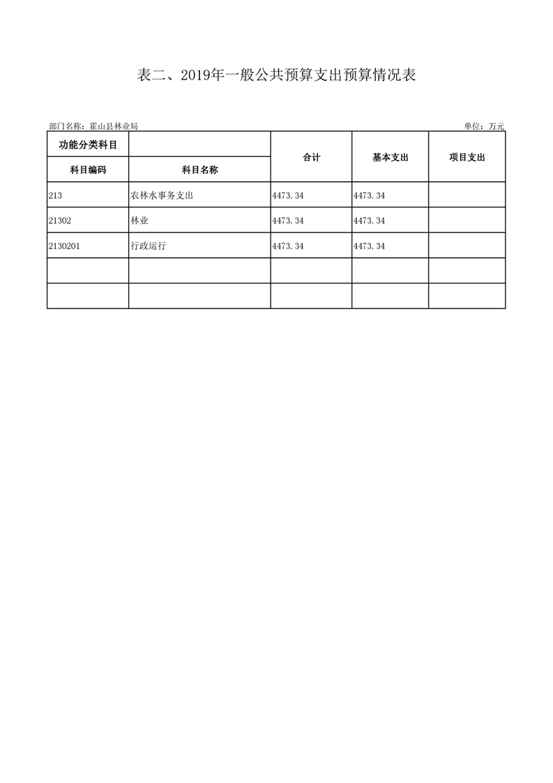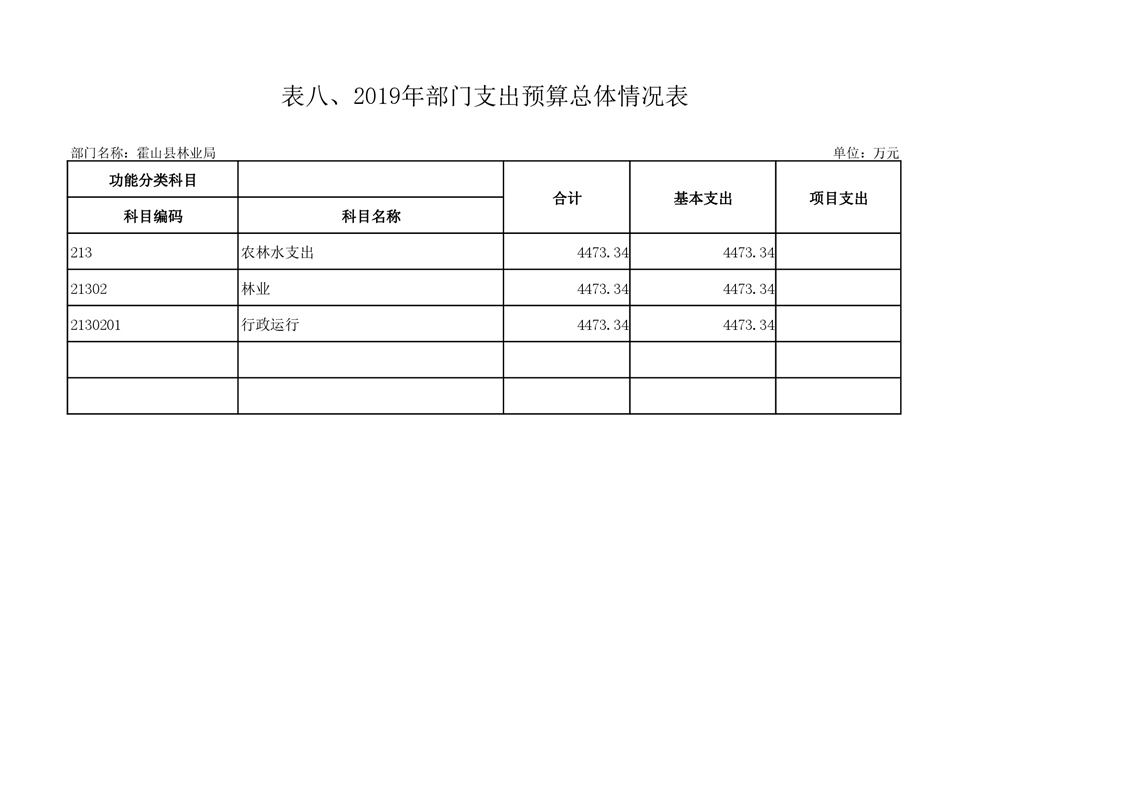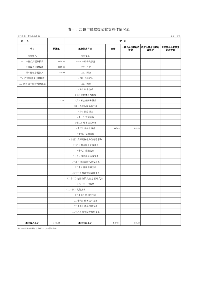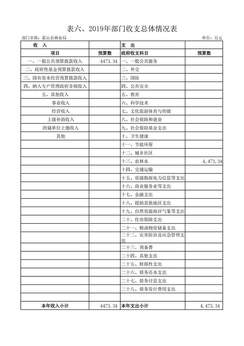 霍山县林业局2019年部门预算报表