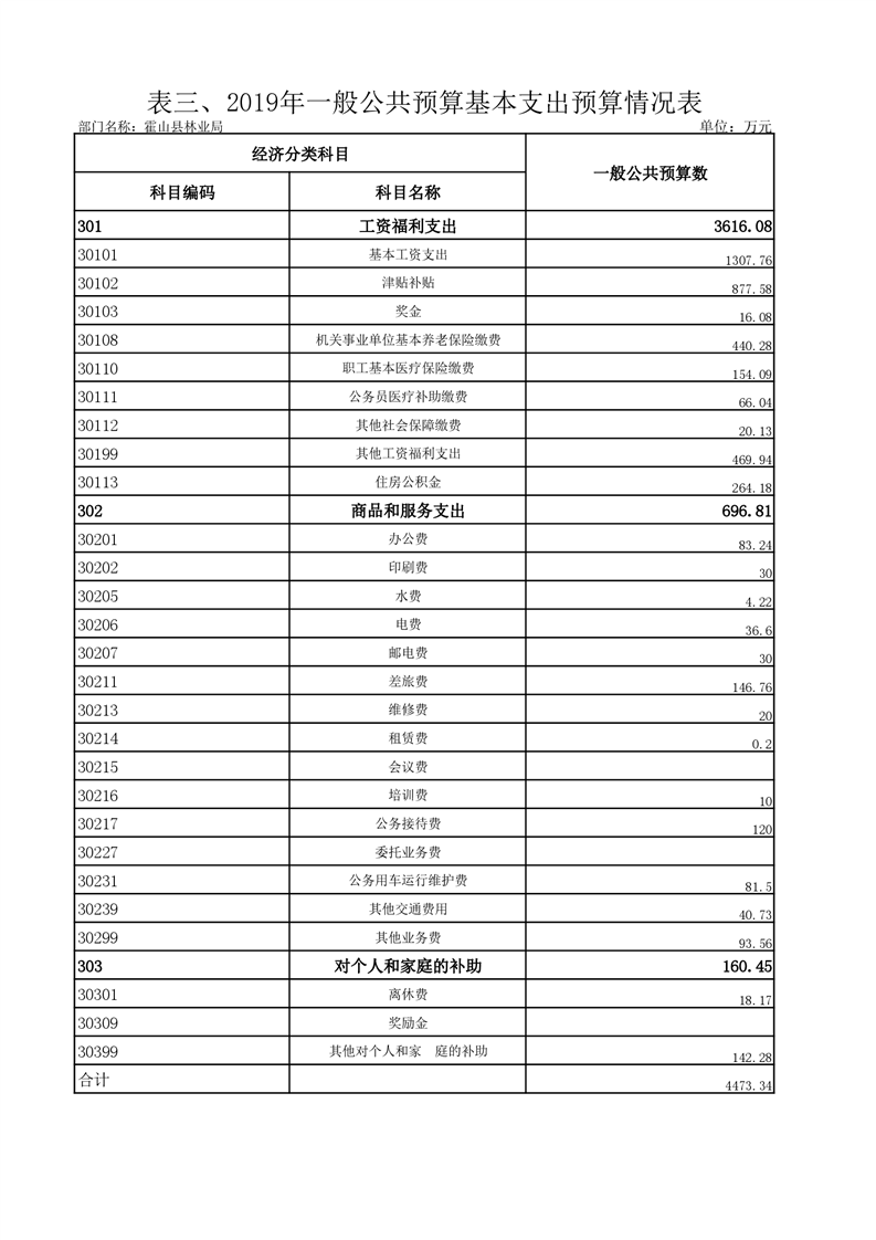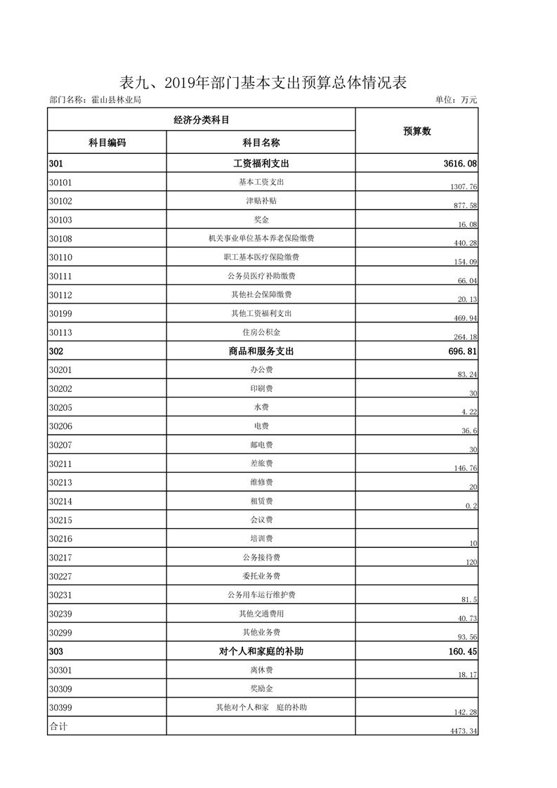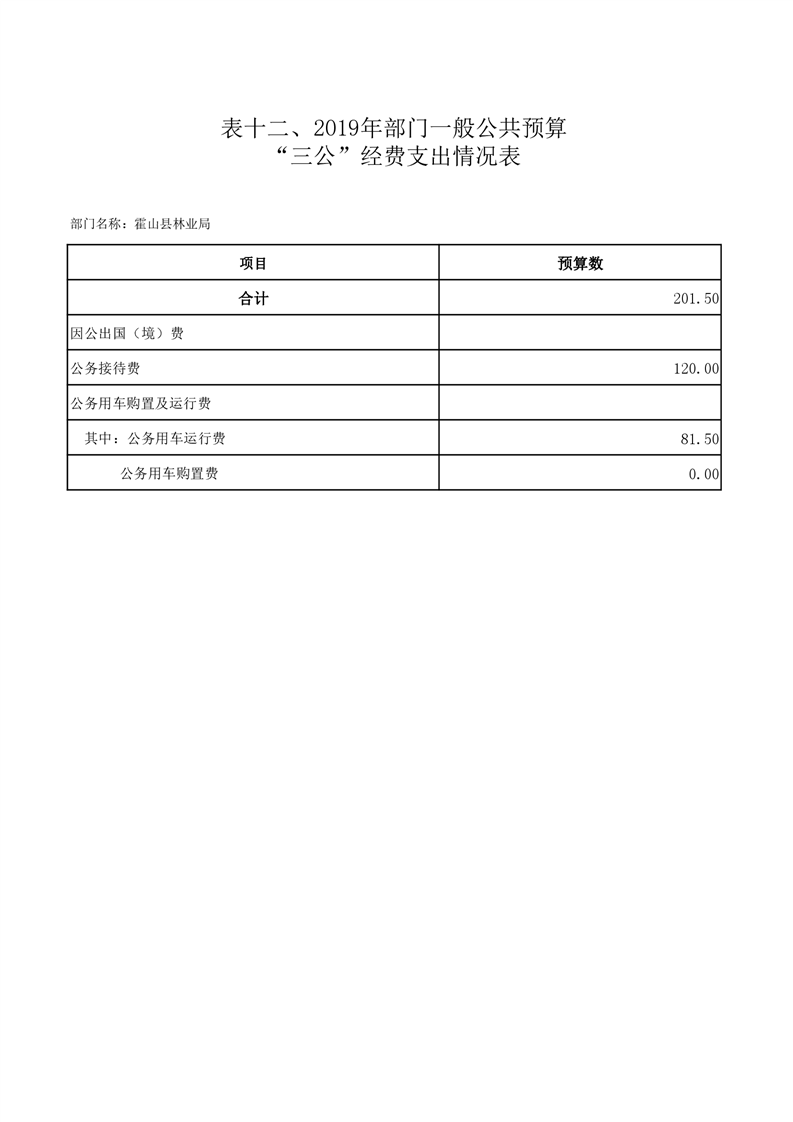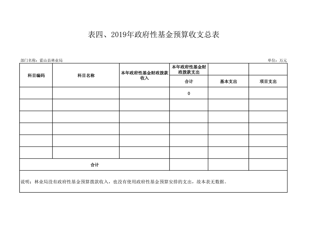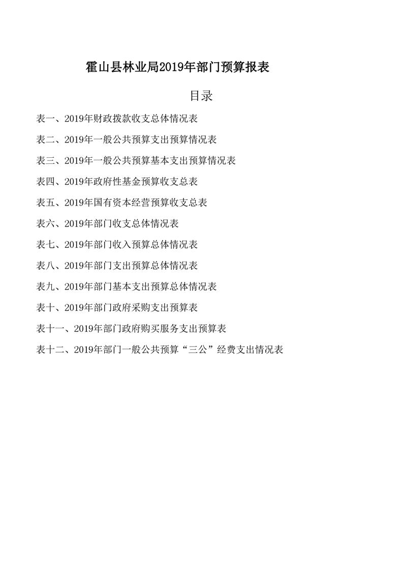 霍山县林业局2019年部门预算报表