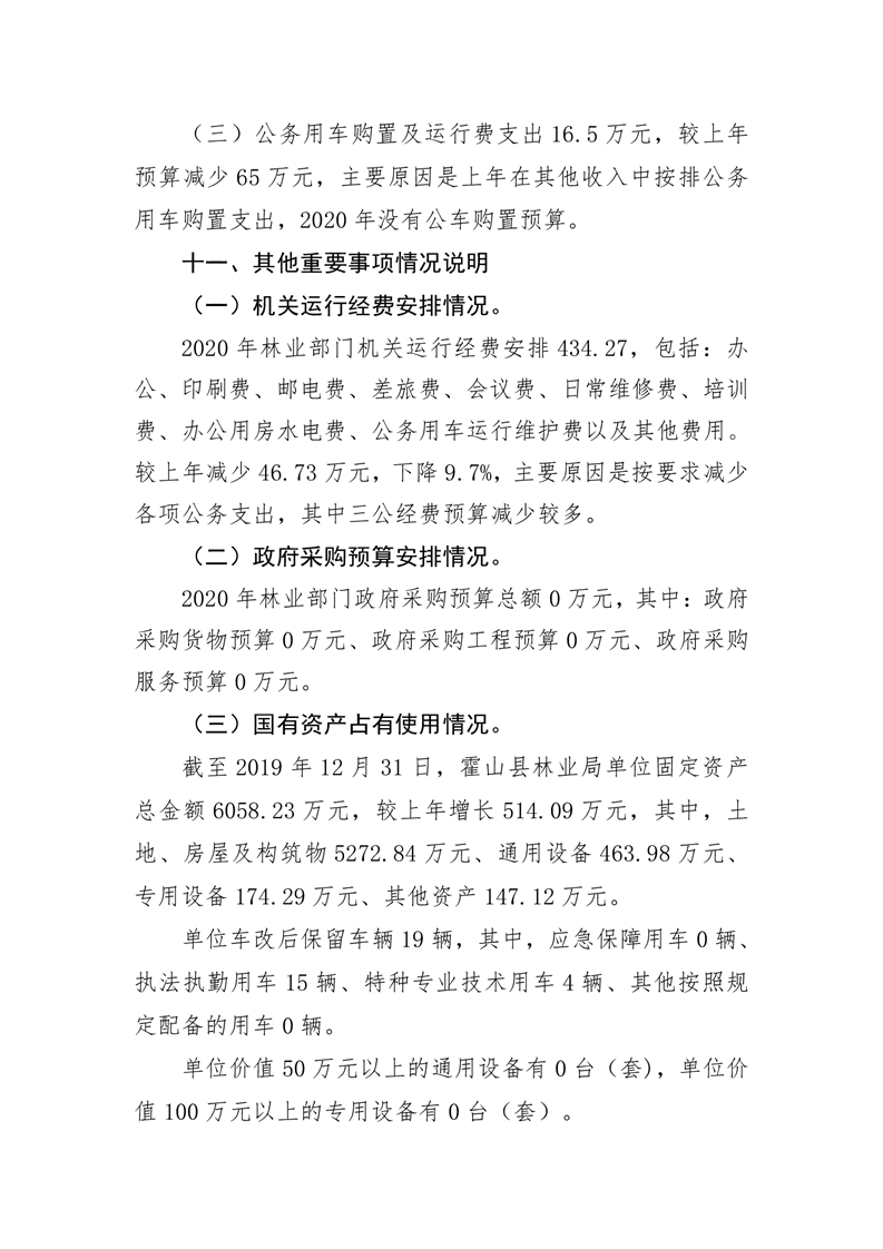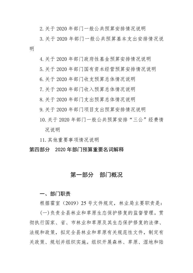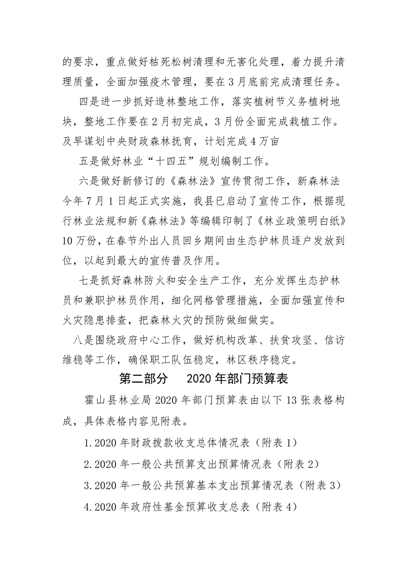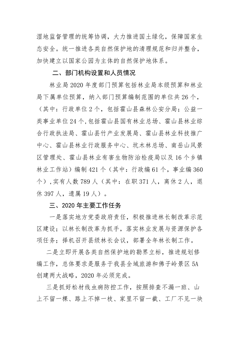 霍山县林业局2020年部门预算公开