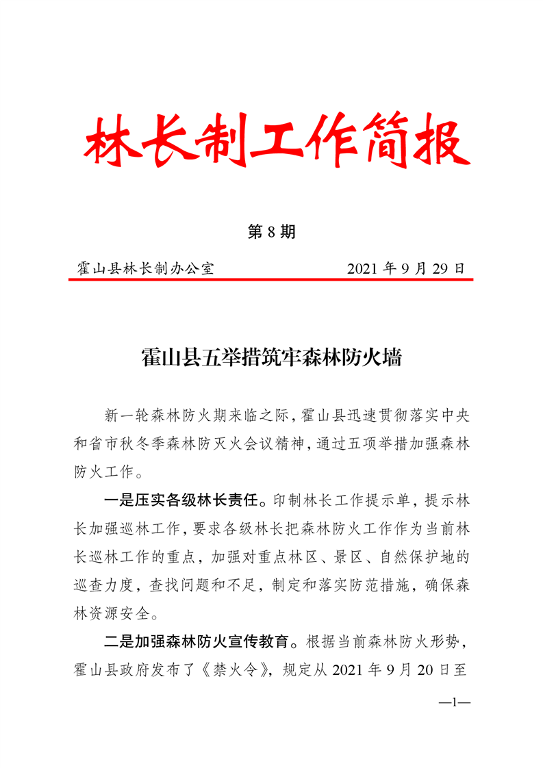霍山县林长制工作开展情况--林长制工作简报第八期
