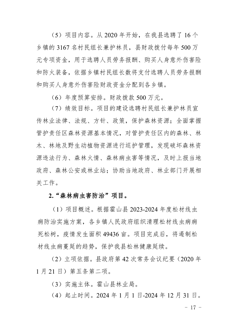 表十四、霍山县林业局2024年项目支出绩效目标表.pdf
