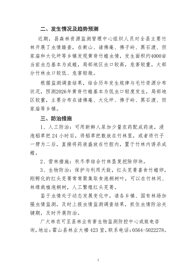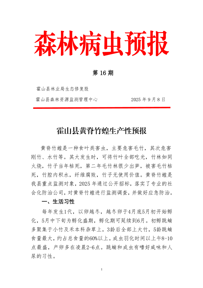预警信息--霍山县黄脊竹蝗生产性预报(第16期)