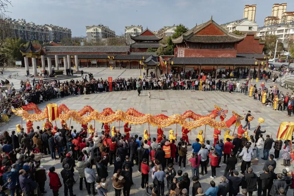 龙狮贺新春踩街活动 潘先波 摄“我们在文庙举行新春文化周活动,恰逢晴好天气,每天大约有3000人次来此观看演出。”霍山县文化馆馆长杨勇说。为丰富市民精神文化生活,霍山县于2月12日至15日在文庙举办2024霍山县新春文化周文艺活动,通过中国大鼓、黄梅表演唱、腰鼓舞等丰富的表演形式,轮番上演《龙腾盛世》《我的中国》等66个精彩节目,让市民在欢乐祥和的氛围中度过一个热闹非凡的春节假期。作为国家级“绿水青山就是金山银山”实践创新基地、全国生态文明建设试点县、首批国家全域旅游示范区的霍山县,其优质的生态资源和丰富的旅游资源吸引了大量游客。为满足广大游客的文化需求,该县在景区开启过大年模式,推出丰富多彩的迎新春系列活动。六万情峡景区、陡沙河温泉旅游度假区等景区景点,通过铁树银花、龙狮纳福、民俗大巡游、天壶杂技秀、大别山传奇演出、风火轮等表演活动,打造文化的派对,让游客乐在其中,流连忘返。