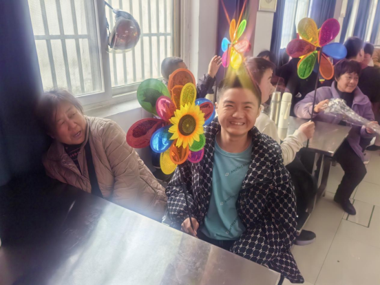 活动依据孩子们不同的年龄特点与认知水平,贴心安排了绘本分享与手工活动。绘本分享环节,志愿者们化身故事魔法师,用亲切的话语、生动的表情和形象的肢体动作,搭配夸张的拟声词模仿,瞬间将孩子们带入奇妙的故事世界。为了让孩子们更好理解,志愿者还把《西兰花先生的理发店》绘本精心做成分解图示,一页页展示,一步步引导。手工活动现场,志愿者们细致示范组装风车的步骤,从挑选材料到拼接固定,边做边耐心讲解。孩子们在志愿者引导下,小心翼翼地组装风车,当五彩风车在孩子们手中欢快旋转时,现场洋溢着银铃般的笑声。