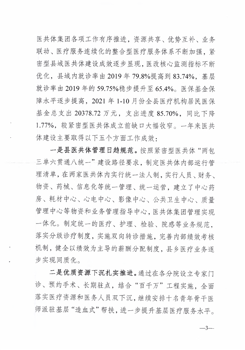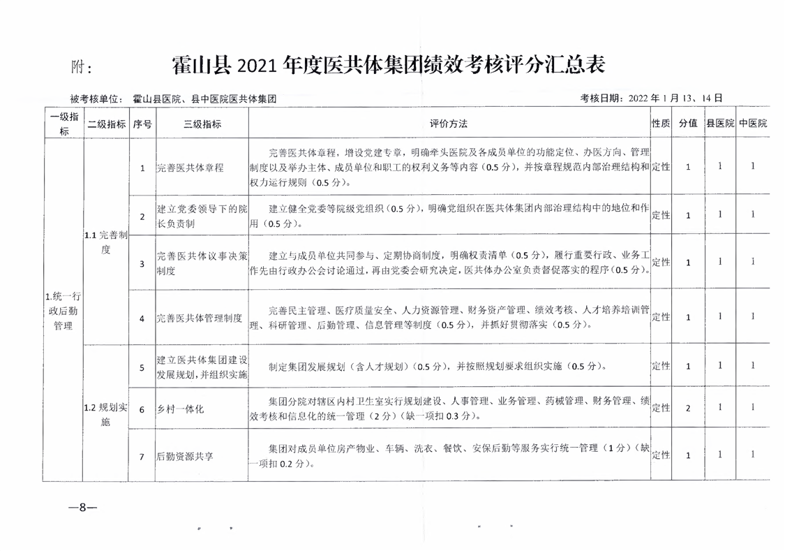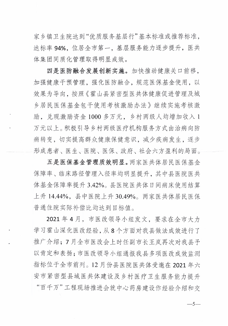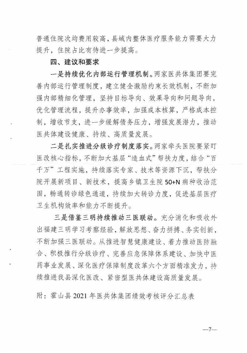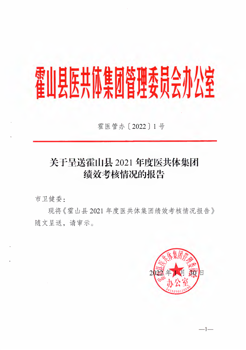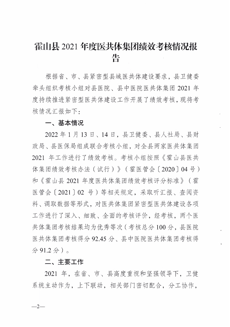关于呈送霍山县2021年度医共体集团绩效考核情况的报告