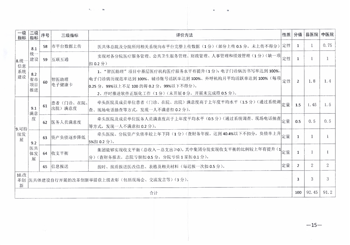公立医疗卫生机构绩效考核结果