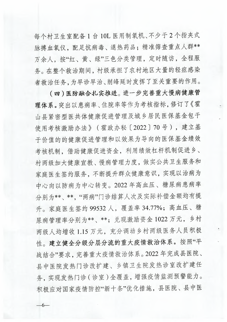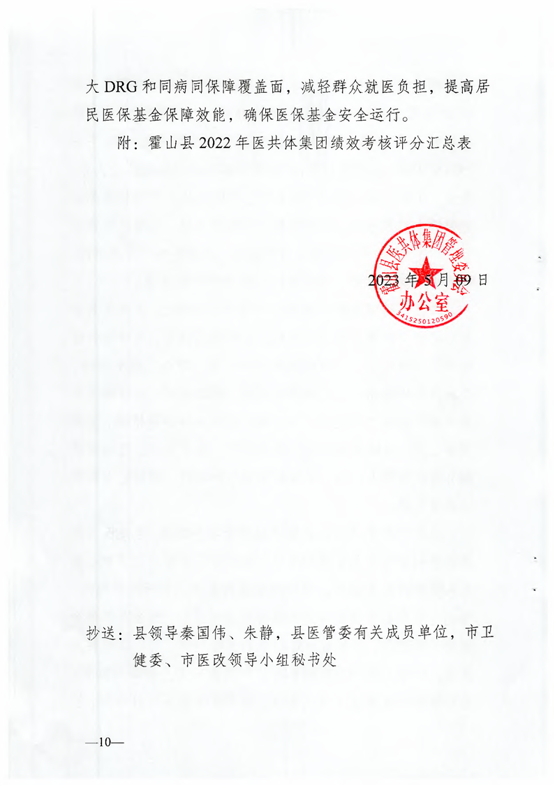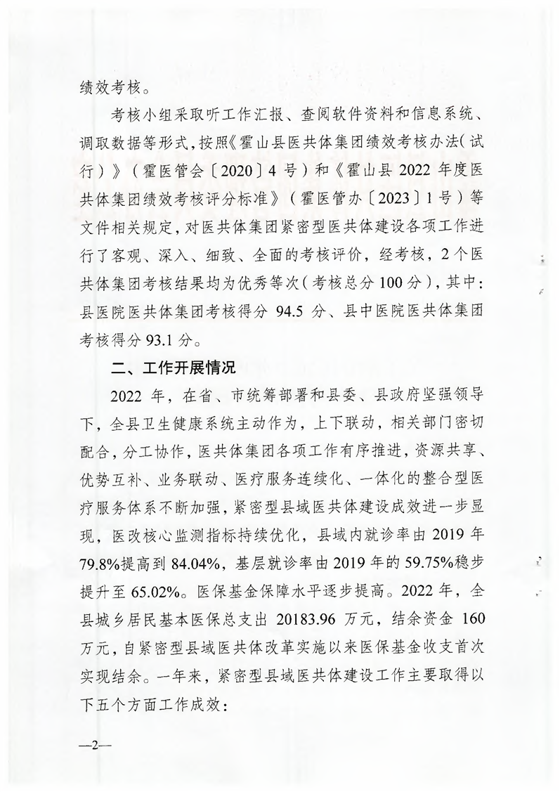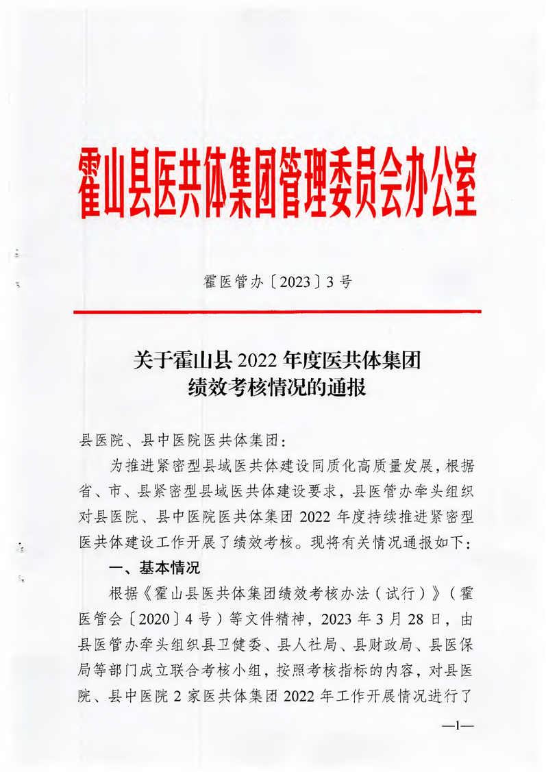 关于霍山县2022年度医共体集团绩效考核情况的通报