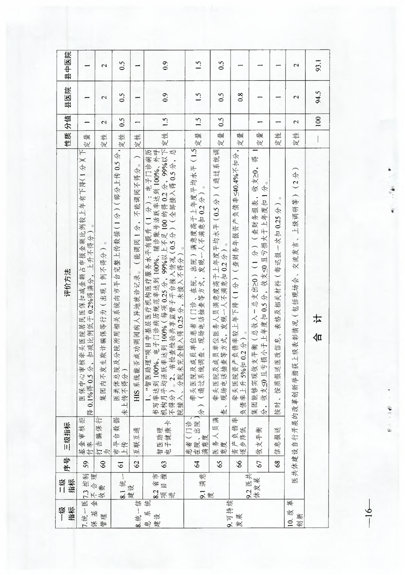 公立医疗卫生机构绩效考核结果