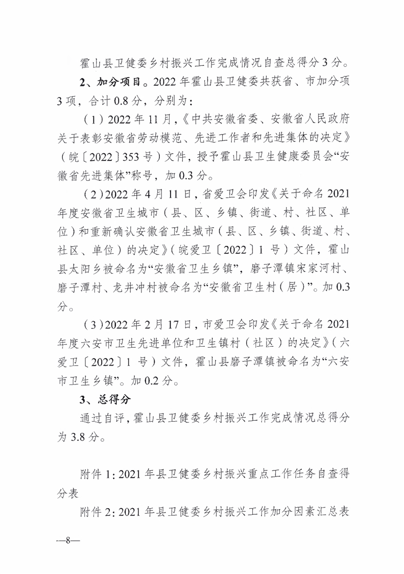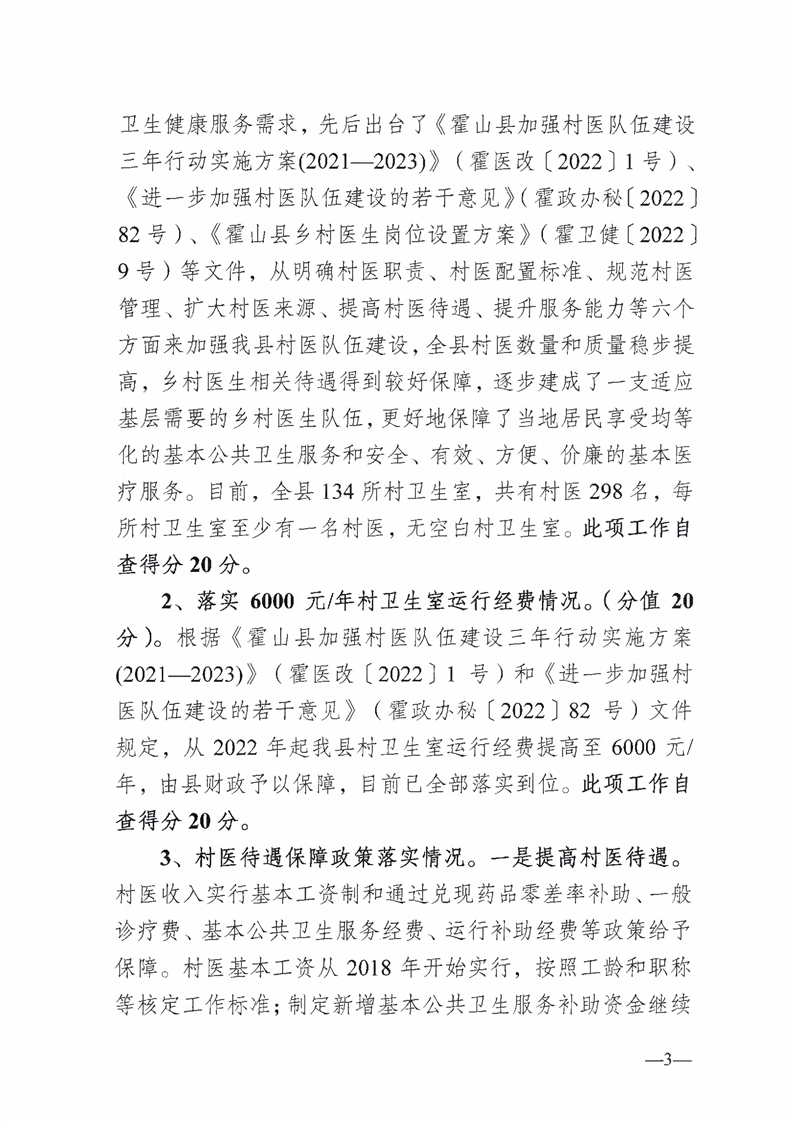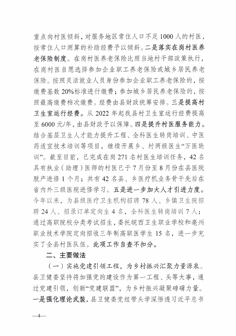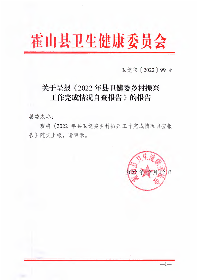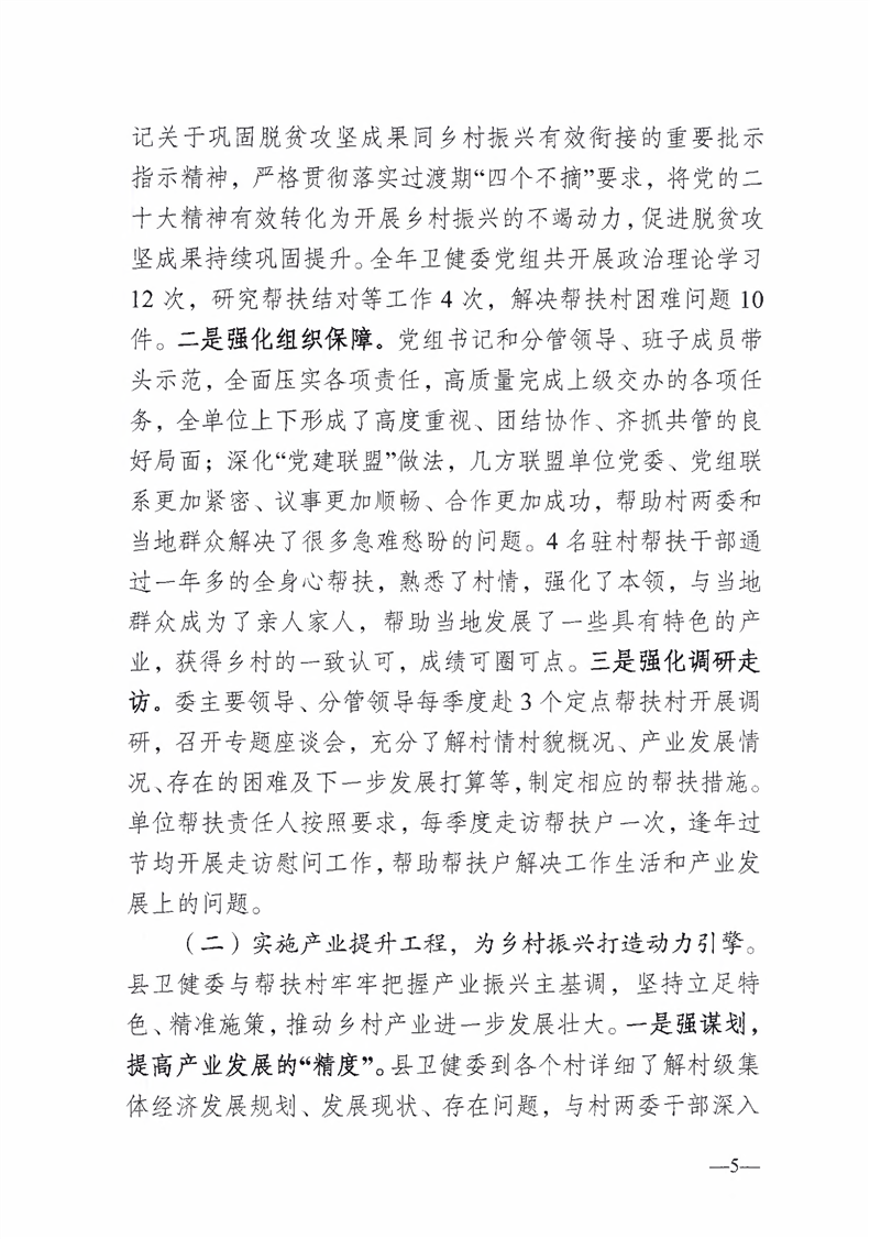 关于2022年县卫健委乡村振兴工作完成情况自查报告