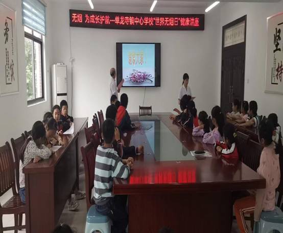 6月1日下午,我院到单龙寺镇中心小学举行了“世界无烟日”健康教育讲座活动,向全体学生宣传吸烟的危害,倡议学生“拒绝第一支烟,做不吸烟新一代”。