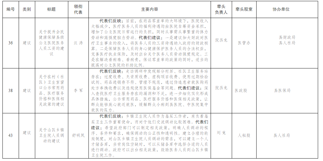 霍山县卫健委人大十八届三次会议建议办理任务分解表