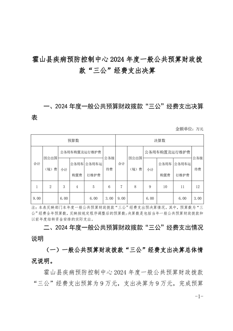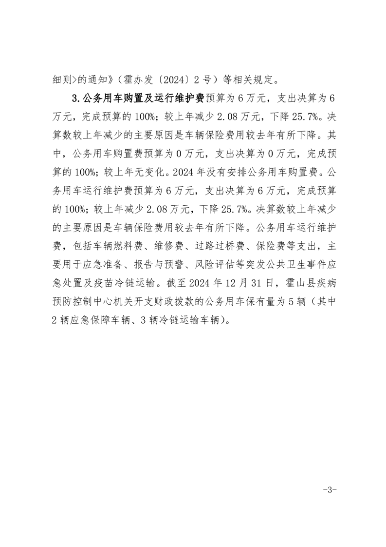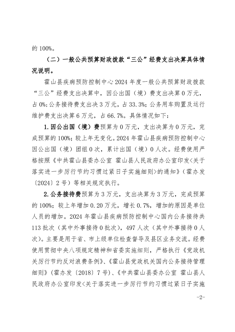 霍山县疾病预防控制中心2024年度部门三公经费决算公开