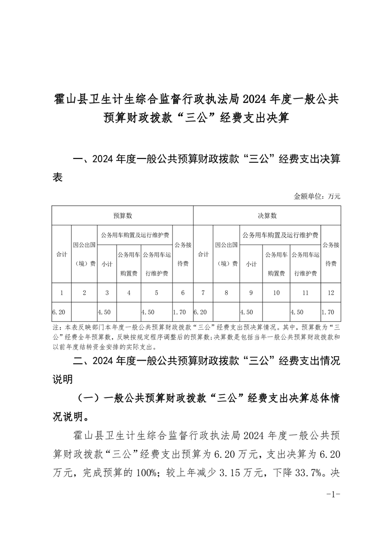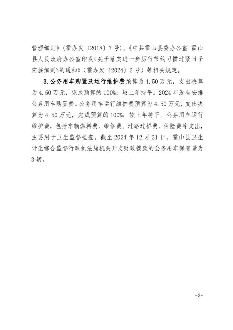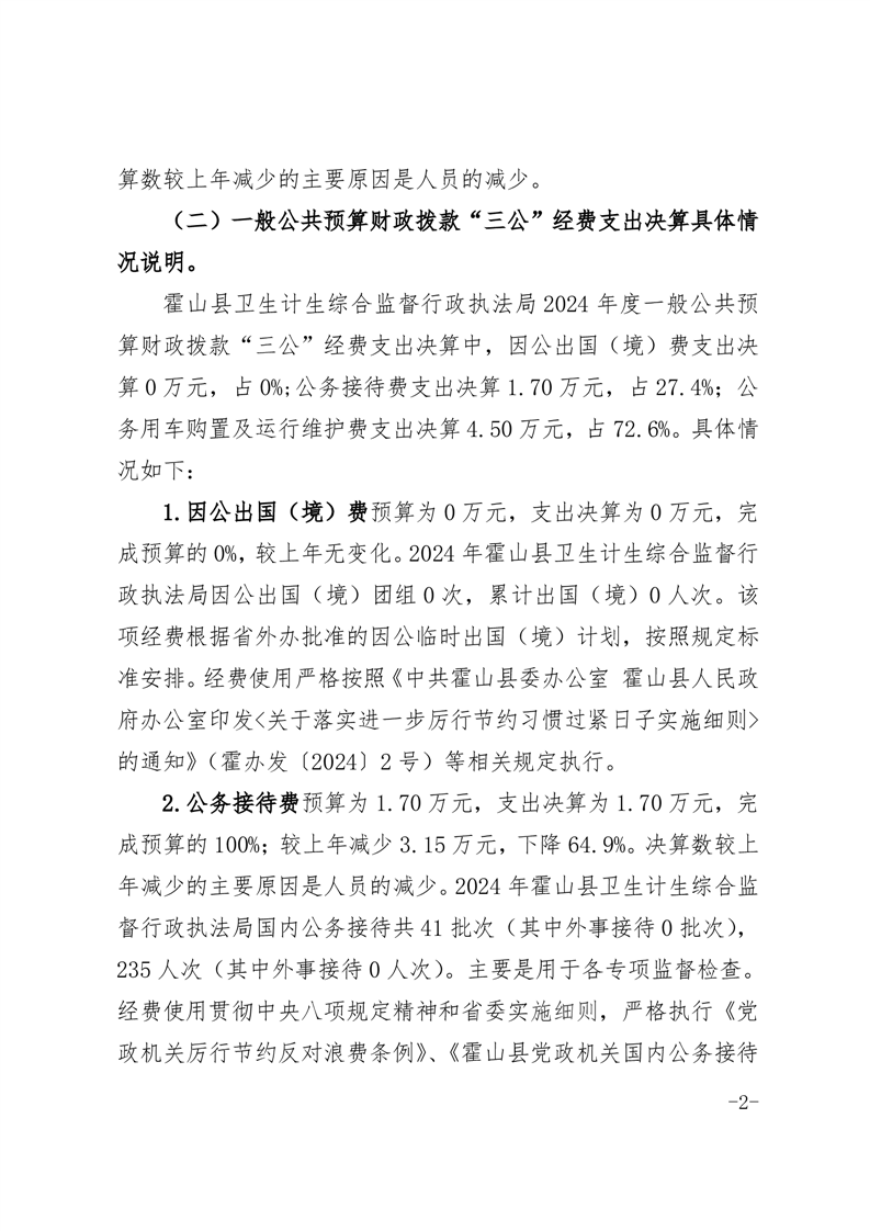 霍山县卫生计生综合监督行政执法局2024年度部门三公经费决算公开
