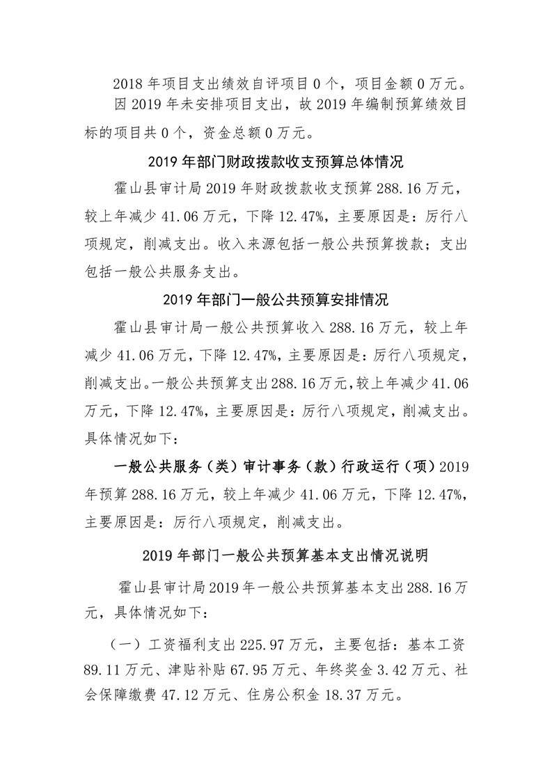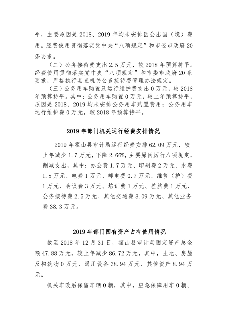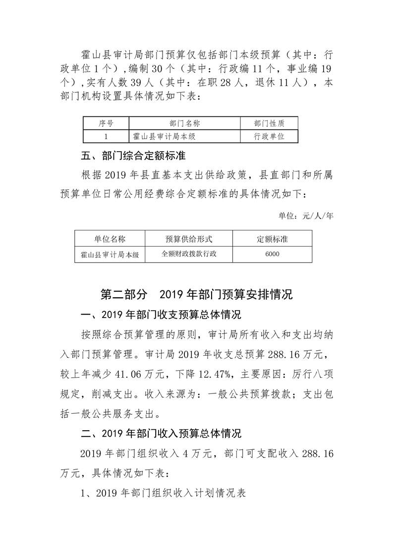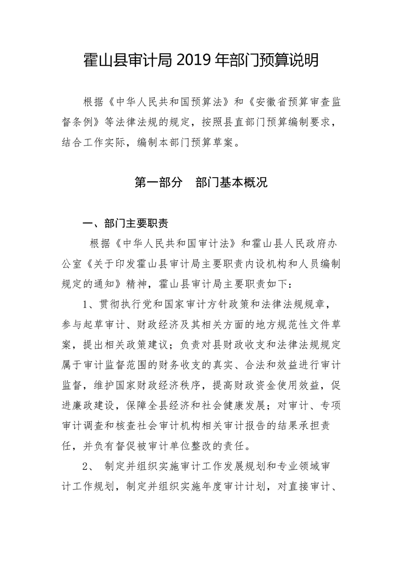 霍山县审计局2019年部门预算公开说明