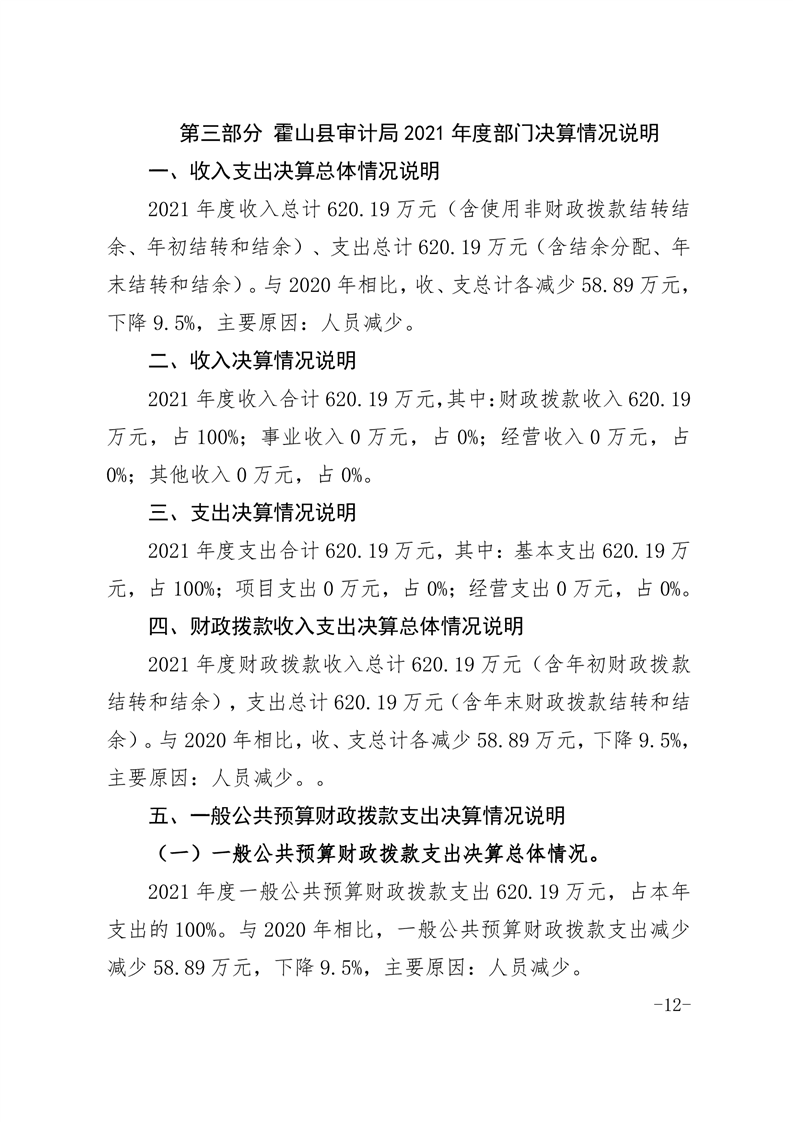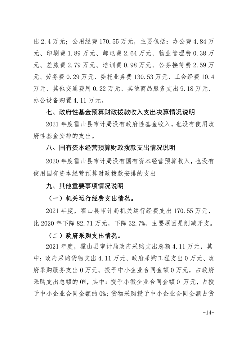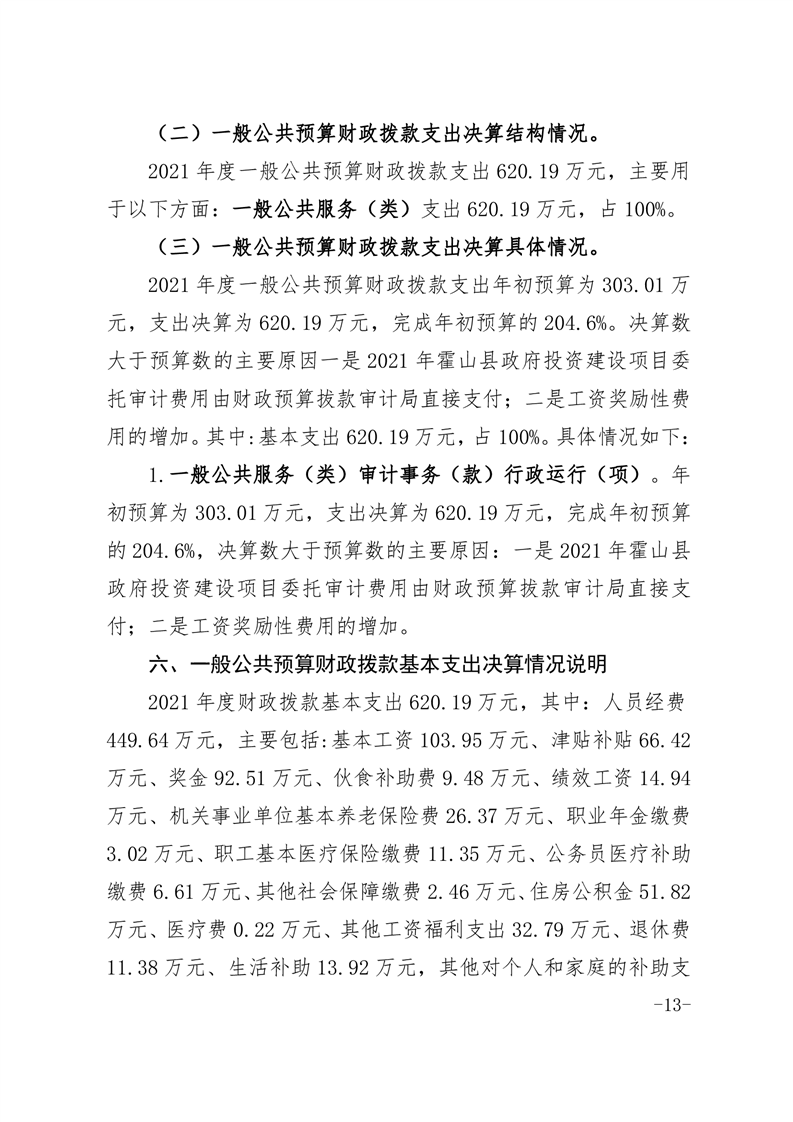 霍山县审计局2021年度部门决算