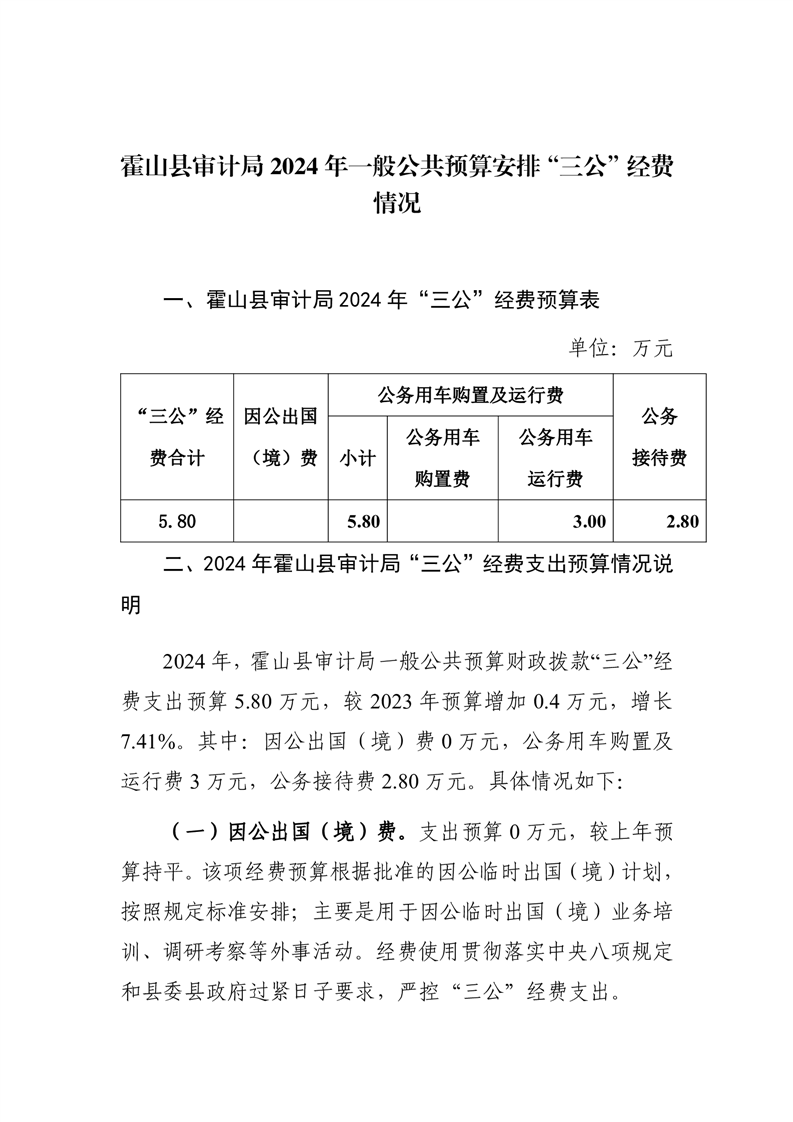 霍山县审计局 2024 年一般公共预算安排“三公”经费情况