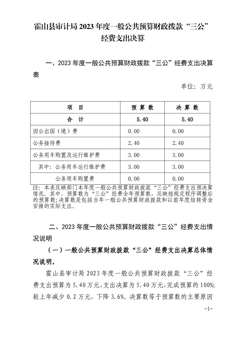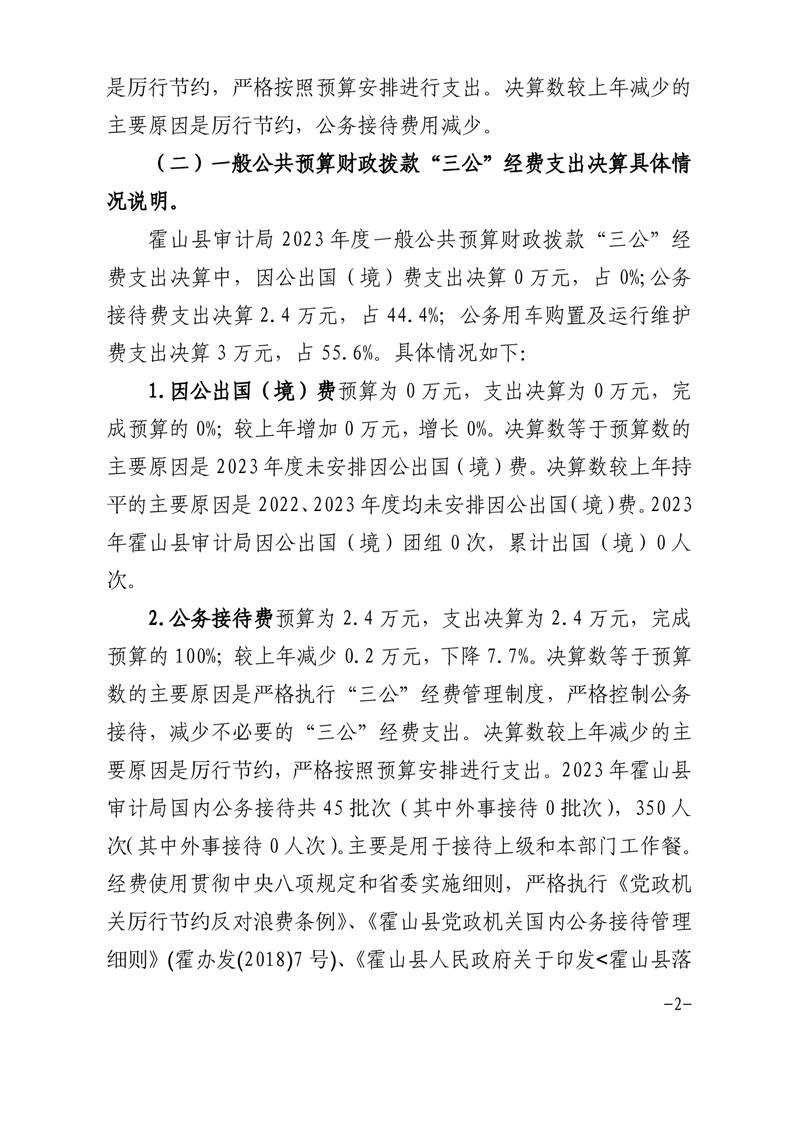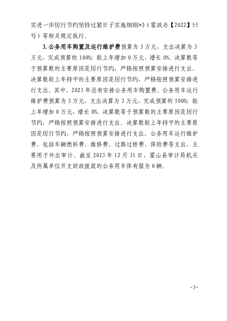 霍山县审计局2023年度一般公共预算财政拨款“三公”经费支出决算