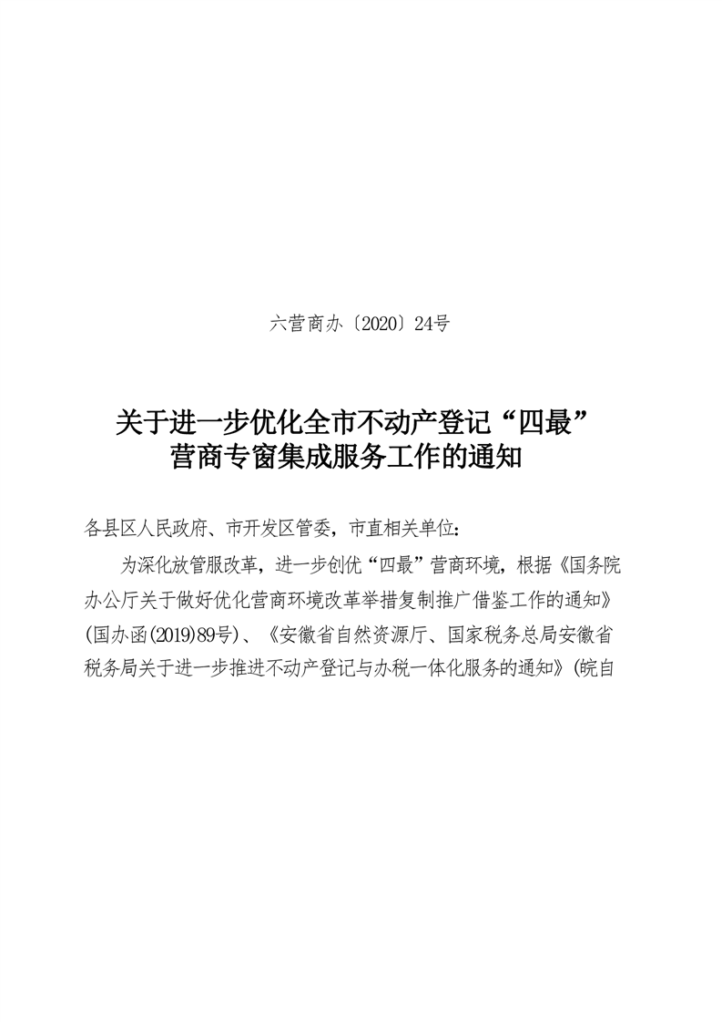 关于进一步优化全市不动产登记“四最”营商专窗集成服务工作的通知