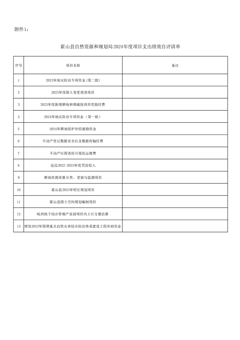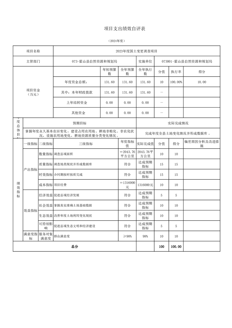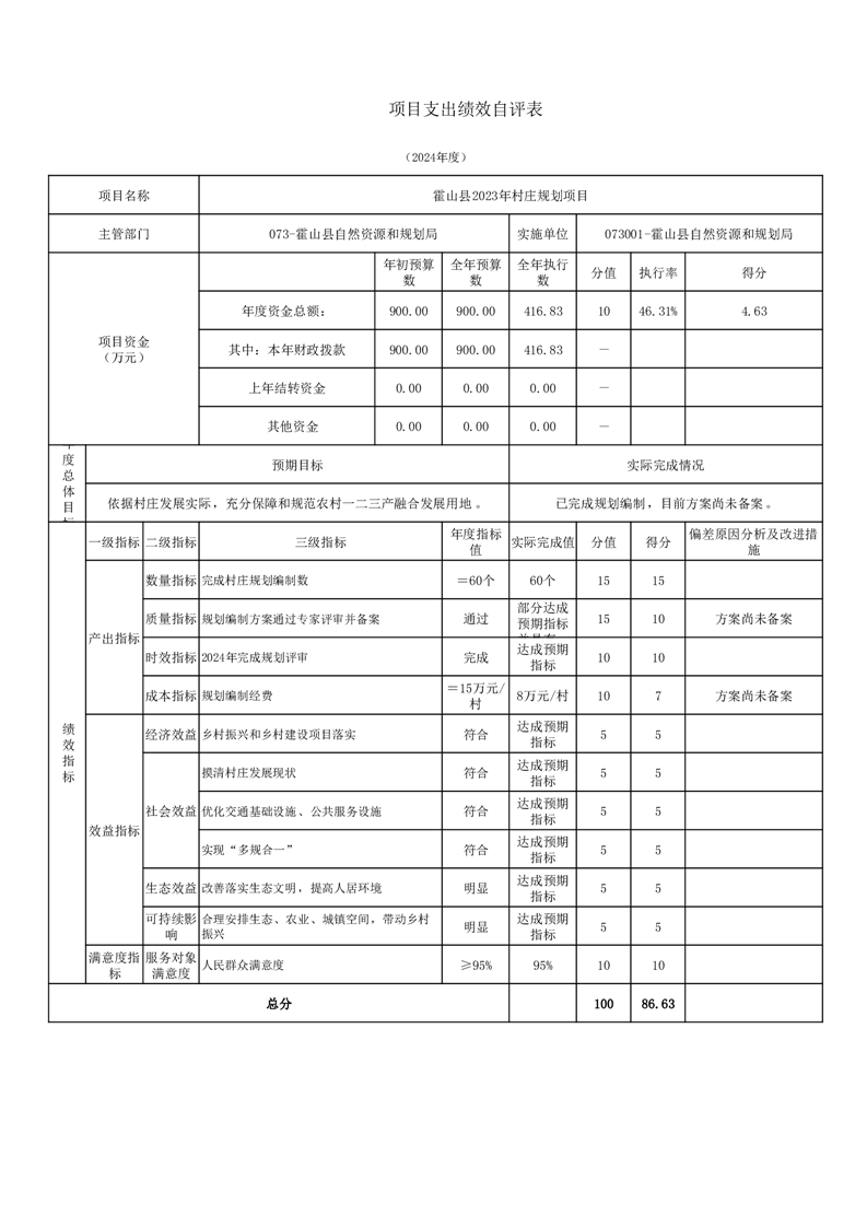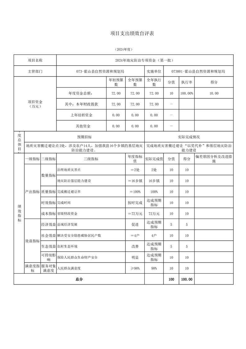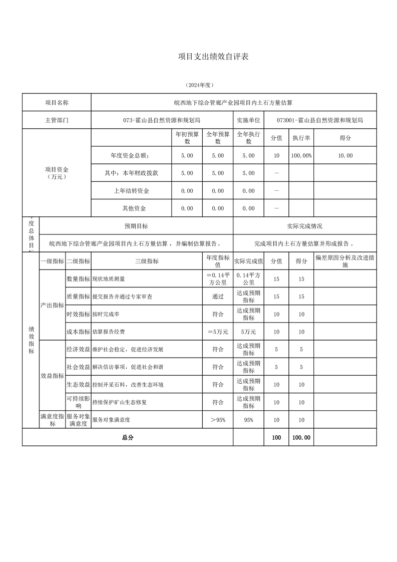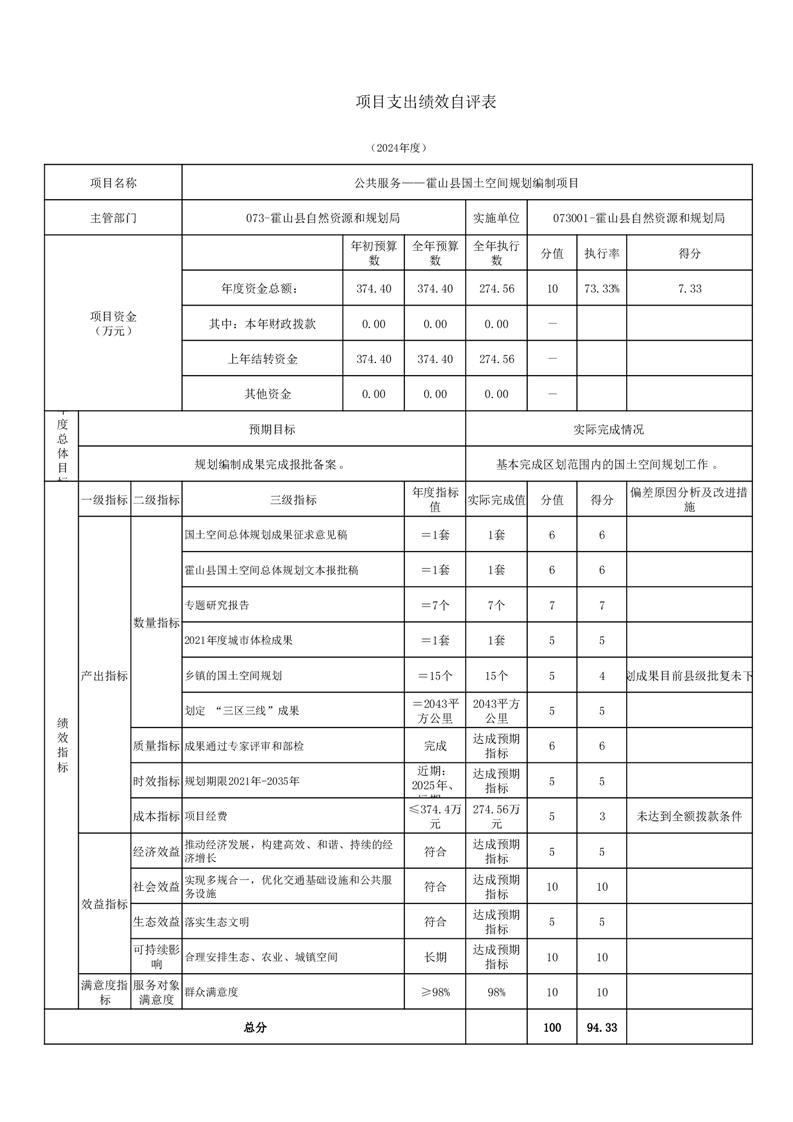 霍山县自然资源和规划局2024年度项目自评表