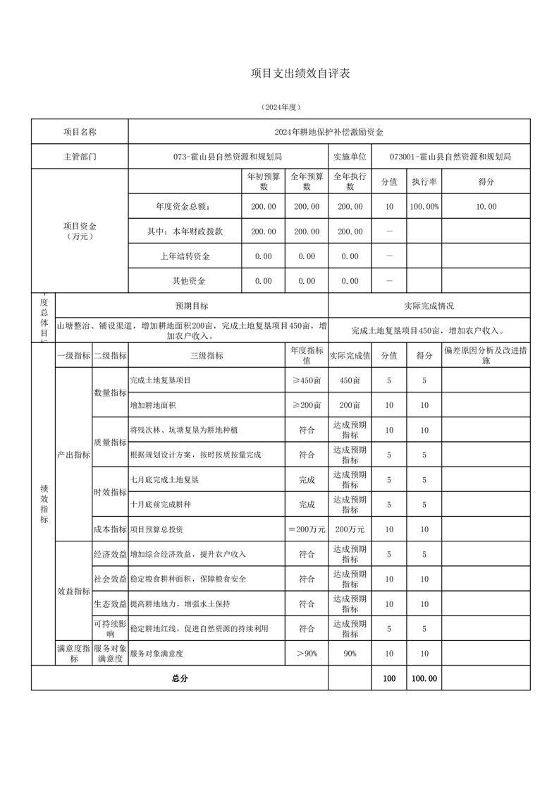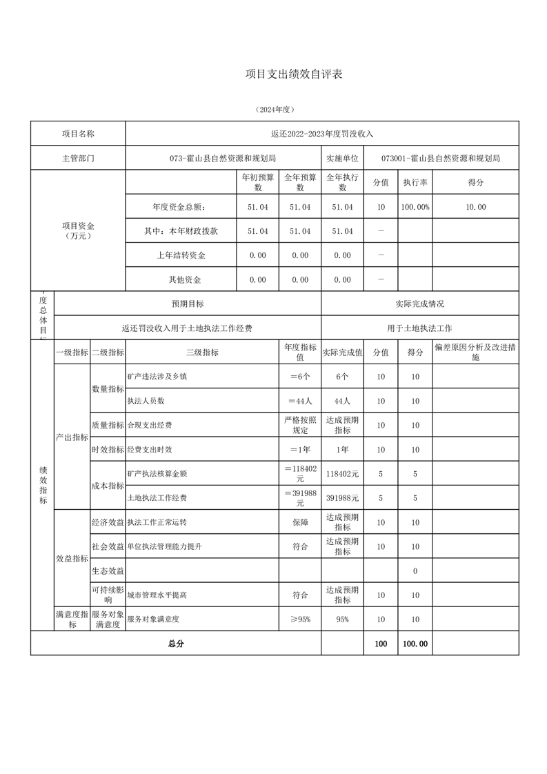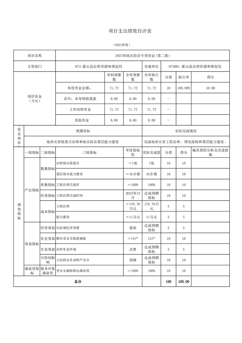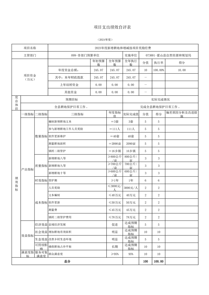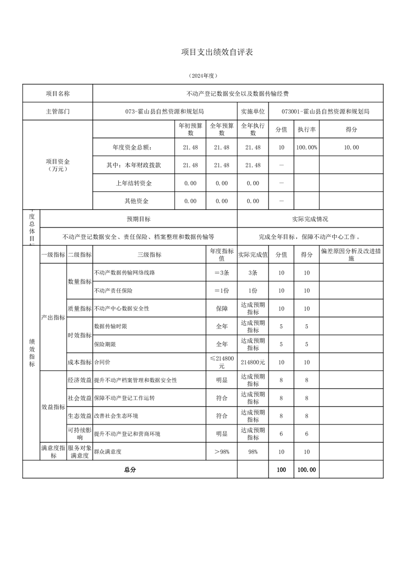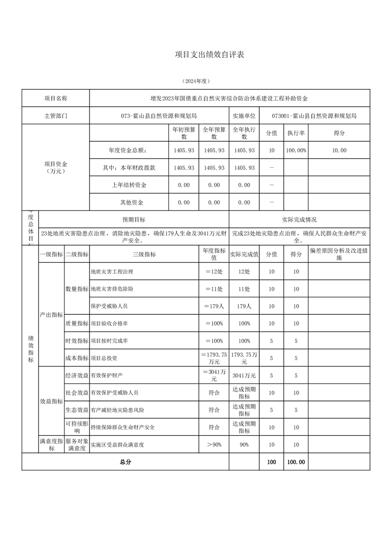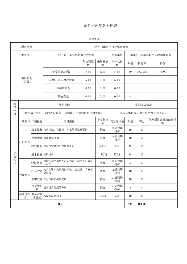霍山县自然资源和规划局2024年度项目自评表
