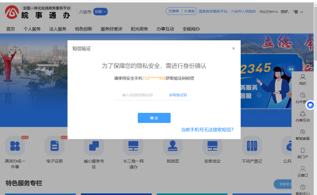 1.打开安徽政务服务网,区域选择“六安市”,点击功能模块“不动产登记”