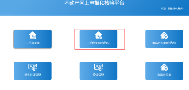 3.进入不动产网上申报平台,选择“二手房买卖(含纳税)”