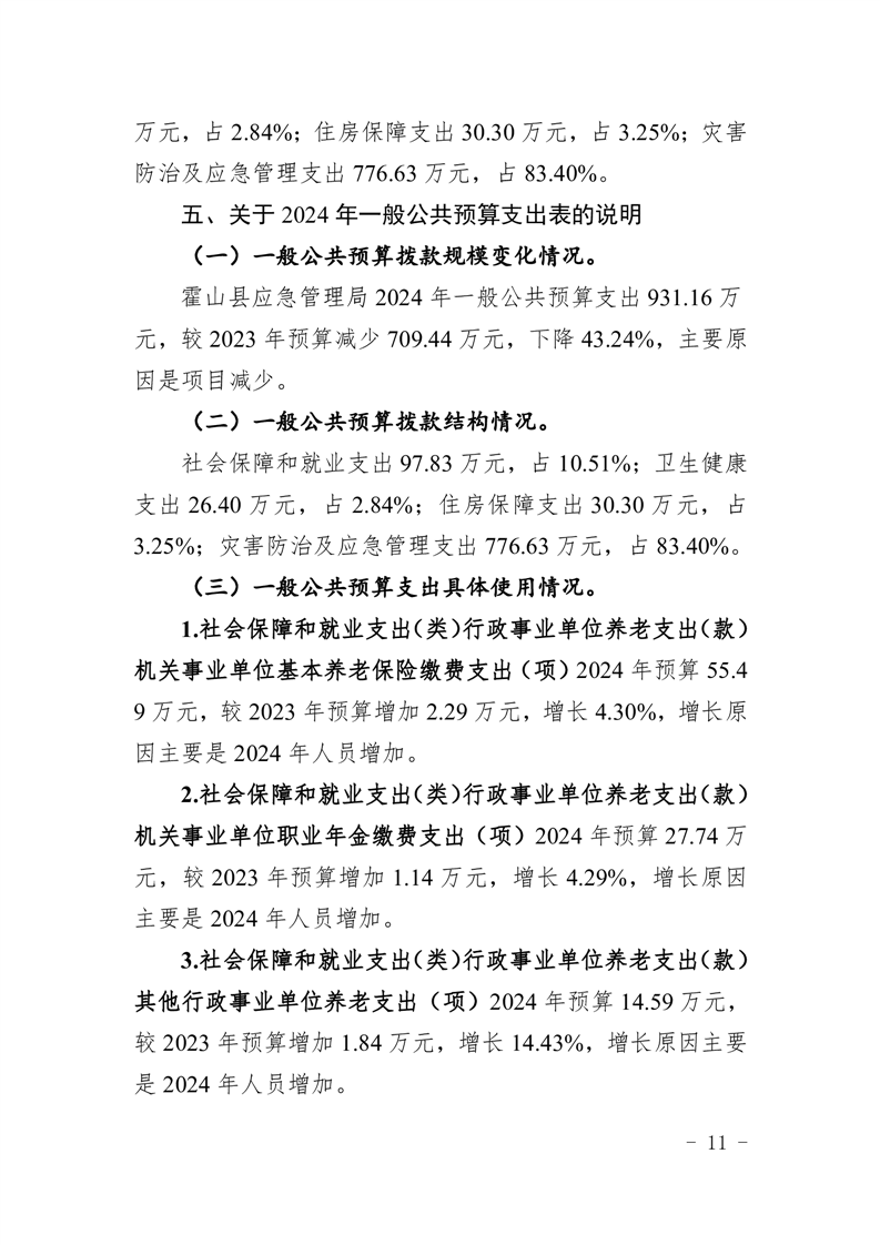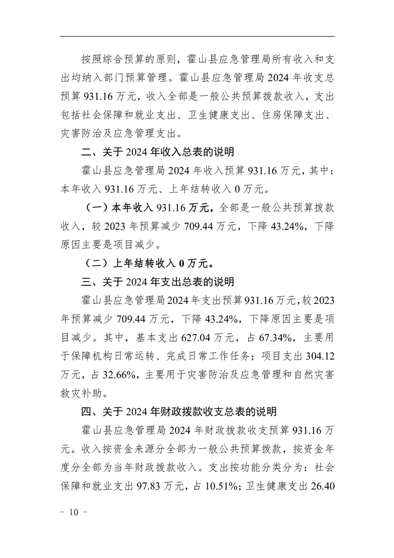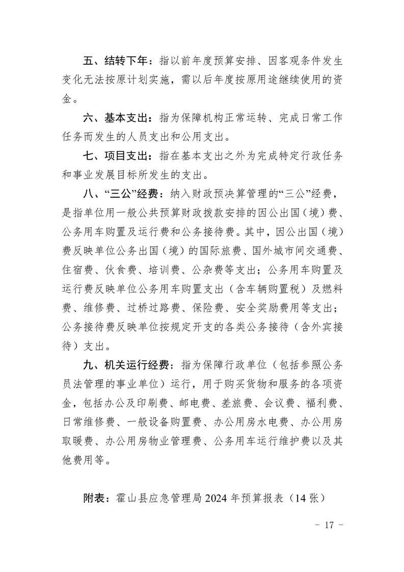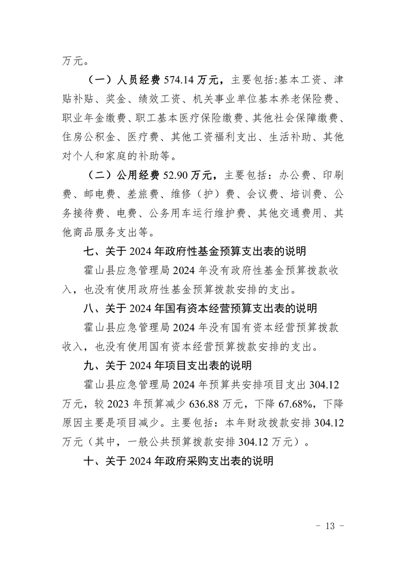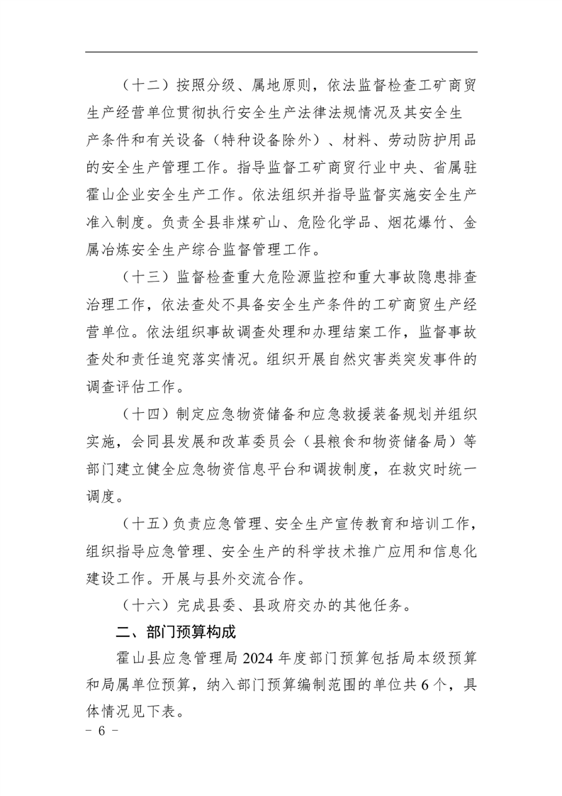 霍山县应急管理局2024年部门预算公开