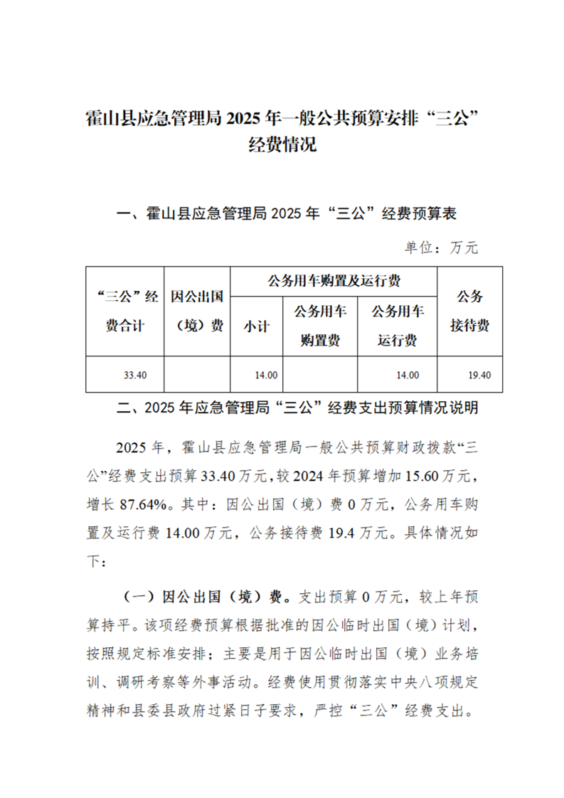 霍山县应急管理局2025年一般公共预算安排“三公”经费情况