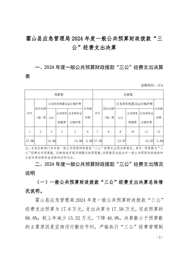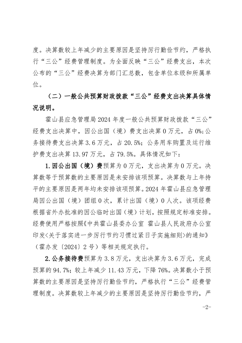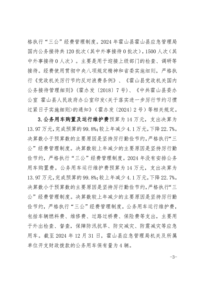 霍山县应急管理局2024年度一般公共预算财政拨款“三公”经费支出决算