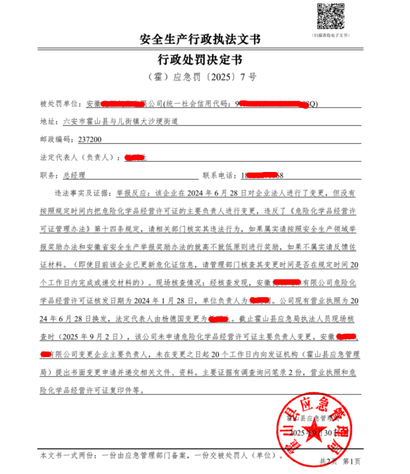 霍山县安全生产行政执法文书 (霍)应急罚(2025)7号