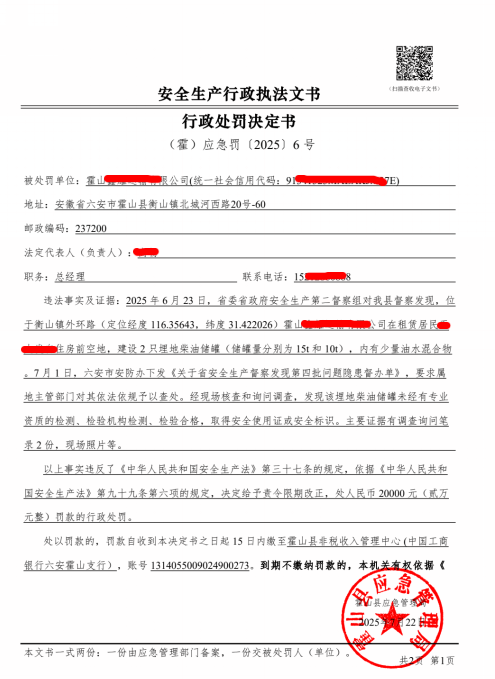 霍山县安全生产行政执法文书 (霍)应急罚(2025)6号