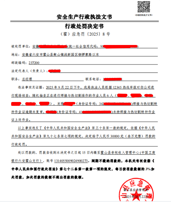 霍山县安全生产行政执法文书 (霍)应急罚(2025)8号