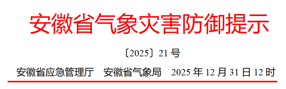 据省气象部门预报,12月31日至2026年1月1日我省有雨雪天气,沿淮淮河以北、大别山区和皖南山区有雨夹雪或小雪,其中淮河以北和皖南山区部分地区中雪、局部大雪,大别山区部分地区大雪、局部暴雪。