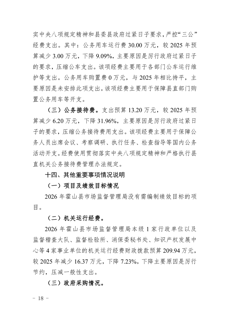 附件表13:霍山县市场监督管理局 2026 年“三公”经费支出预算表.pdf