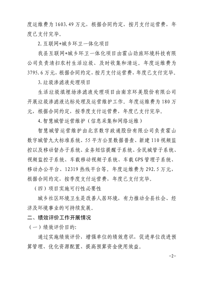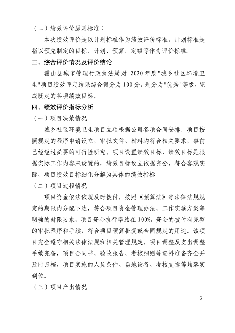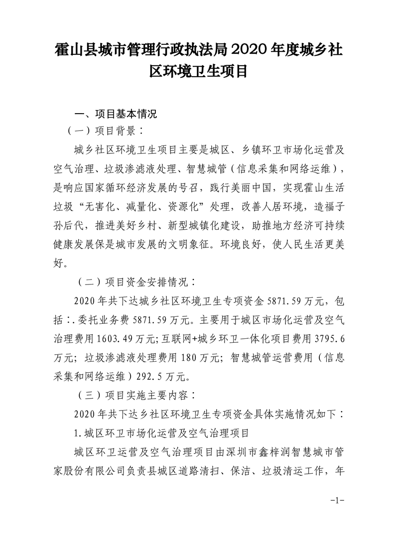 霍山县城市管理行政执法局2020年度城乡社区环境卫生项目