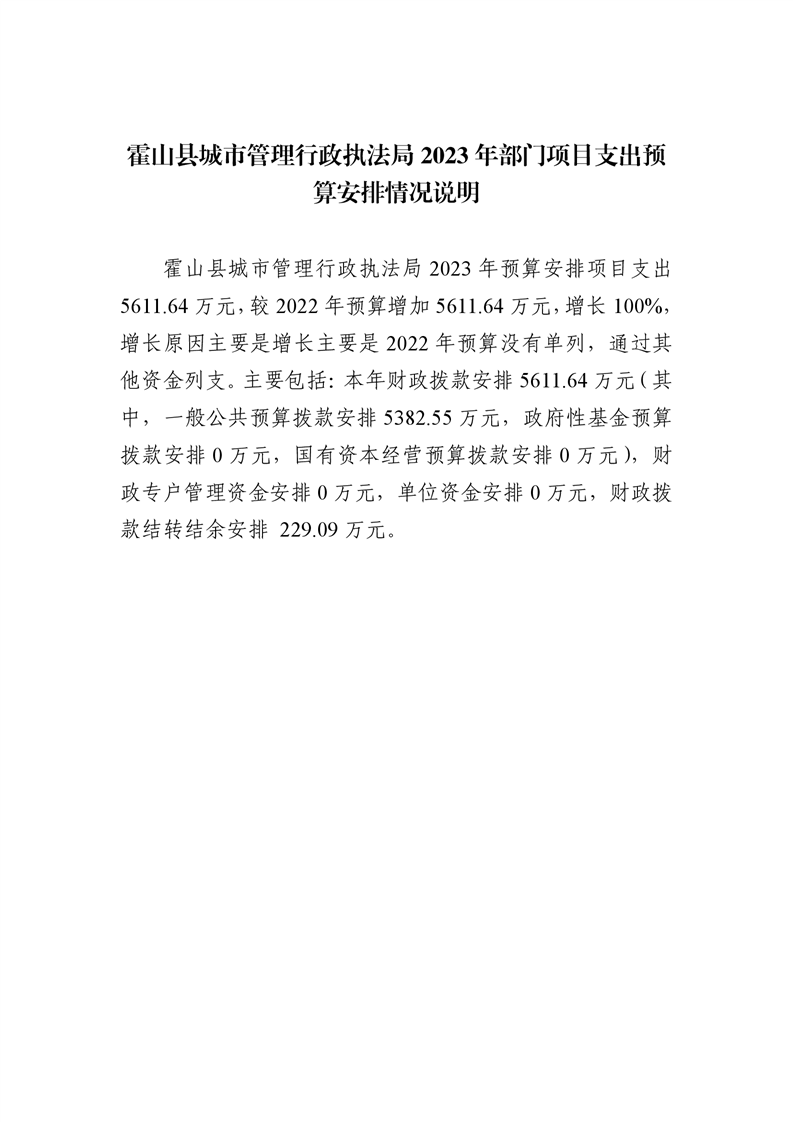 霍山县城市管理行政执法局2023年部门预算项目支出预算安排情况说明