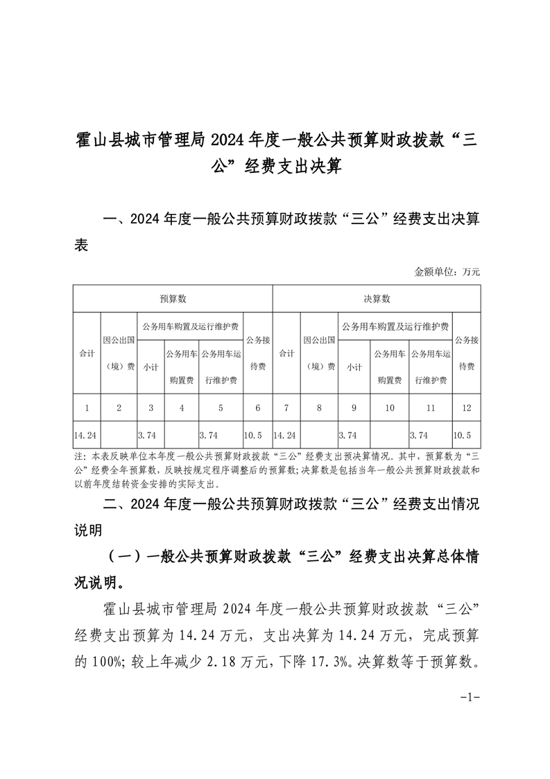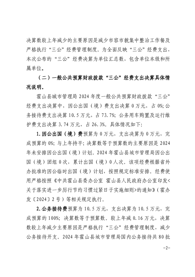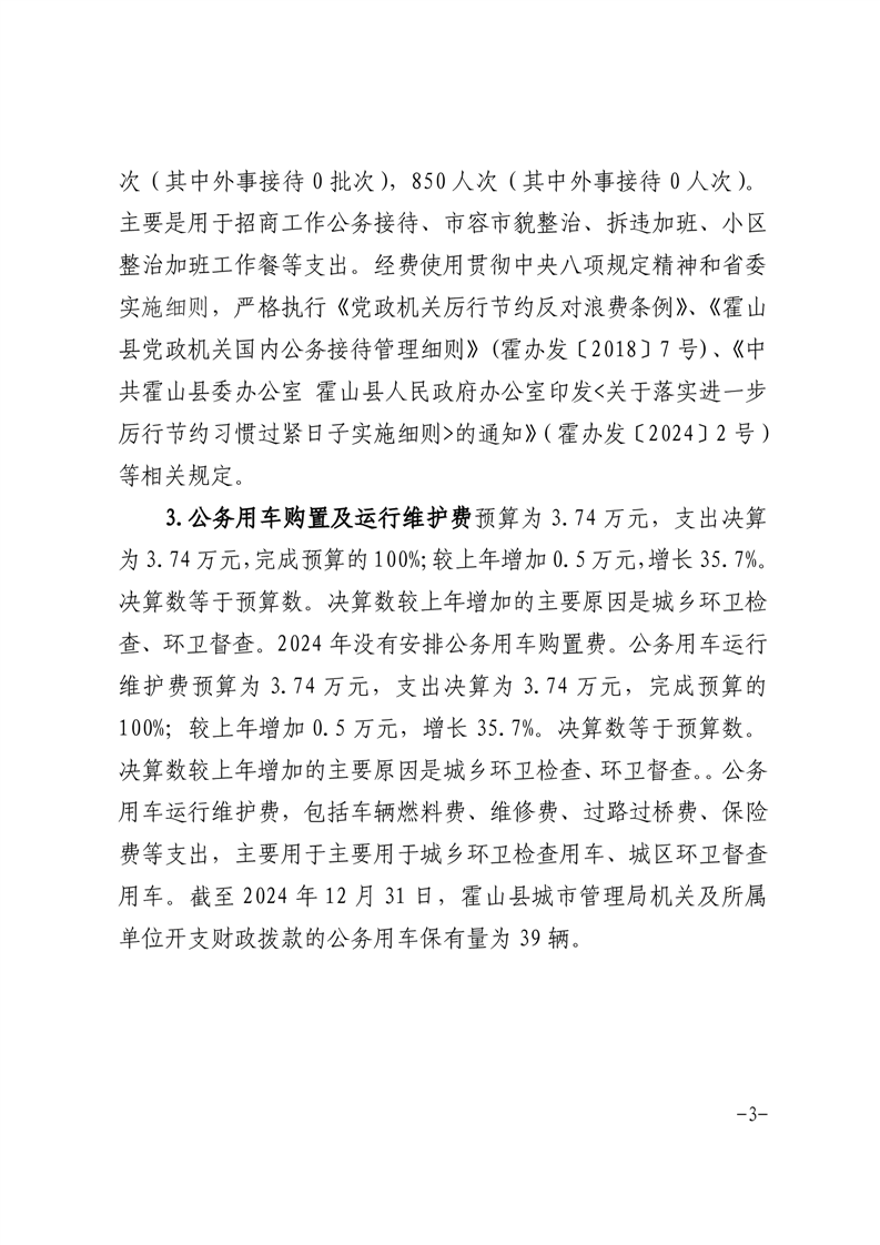 霍山县城市管理局2024年度一般公共预算财政拨款“三公”经费支出决算