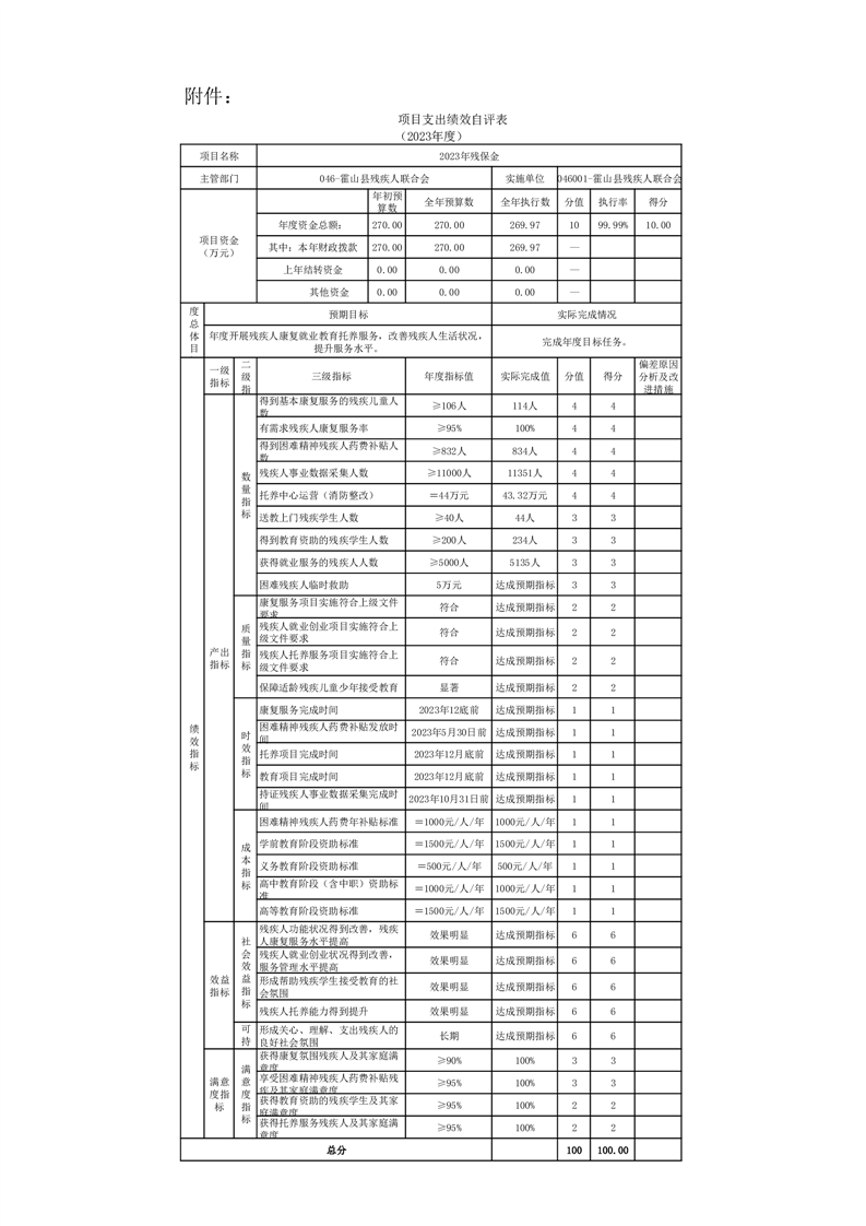 霍山县残联2023年残保金项目绩效自评表