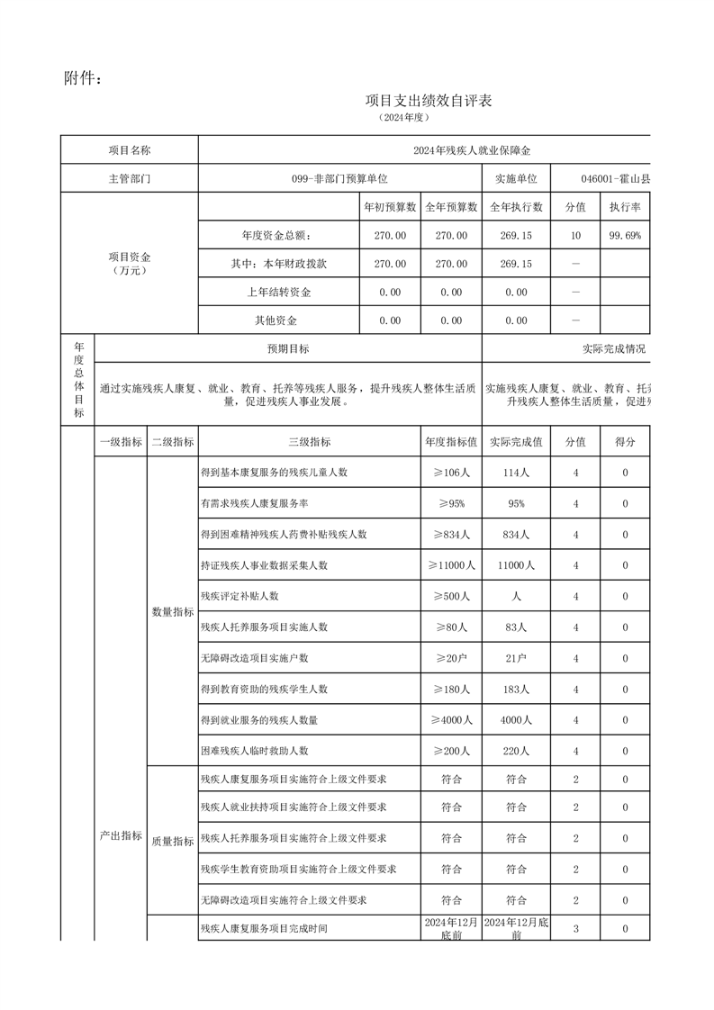 霍山县残联2024年残保金项目绩效自评表