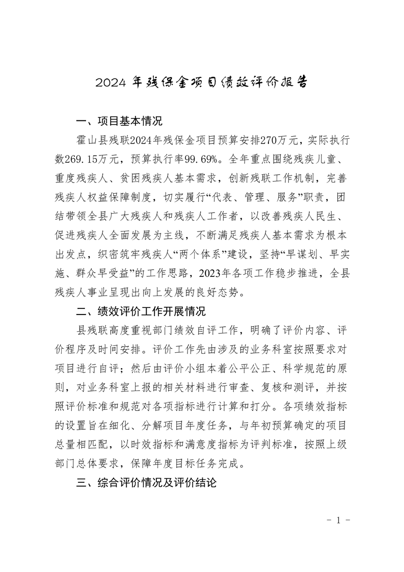 霍山县残联2024年残保金项目绩效评价报告