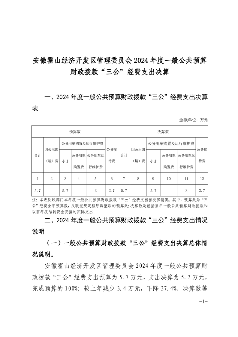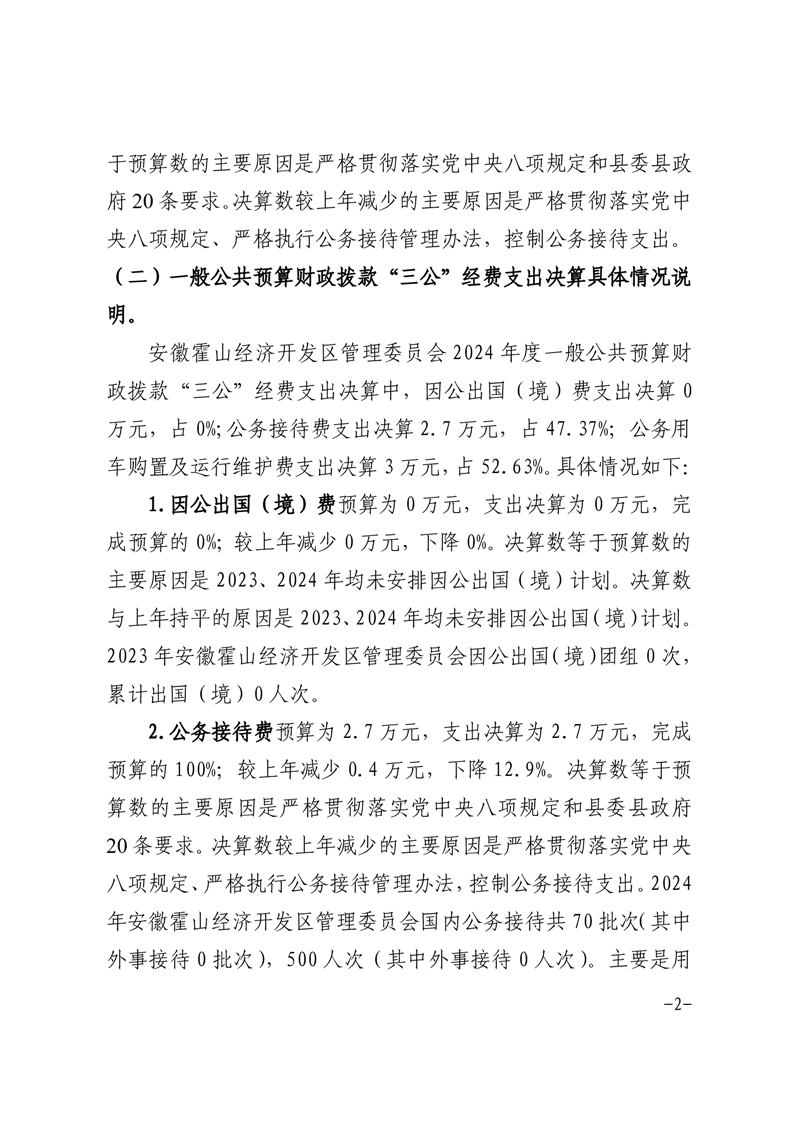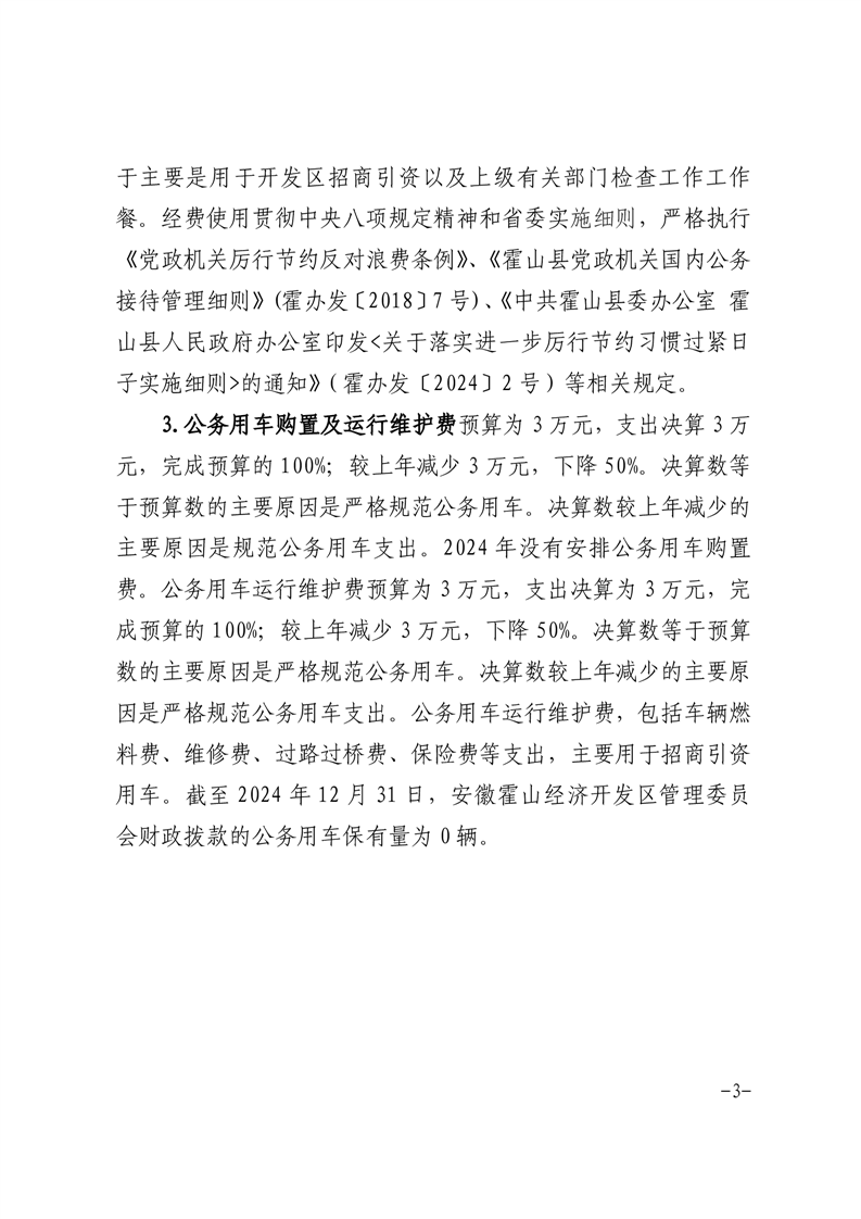 安徽霍山经济开发区管理委员会2024年度一般公共预算财政拨款“三公”经费支出决算