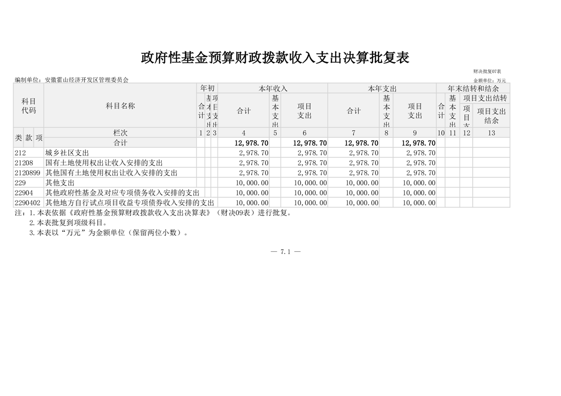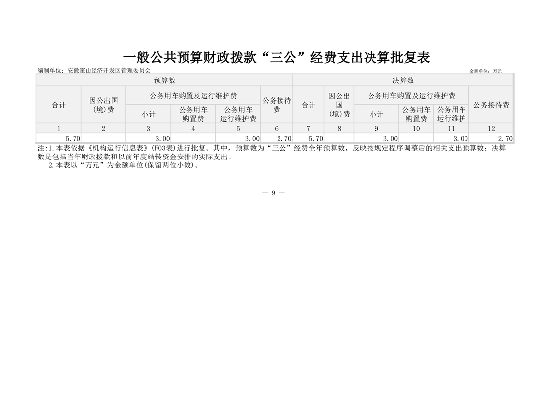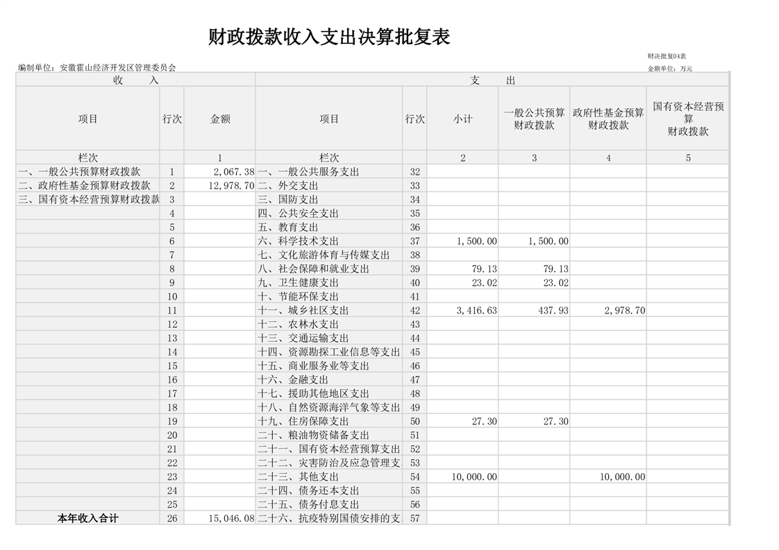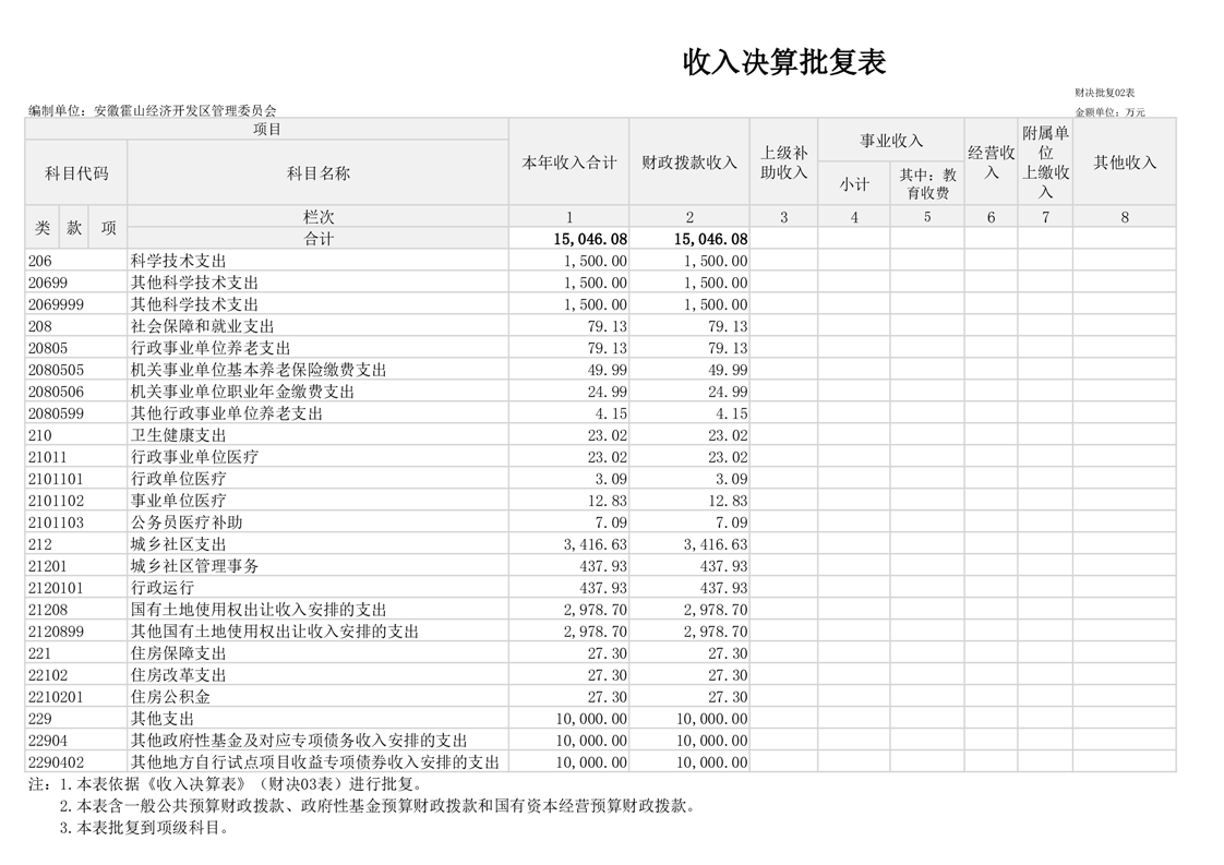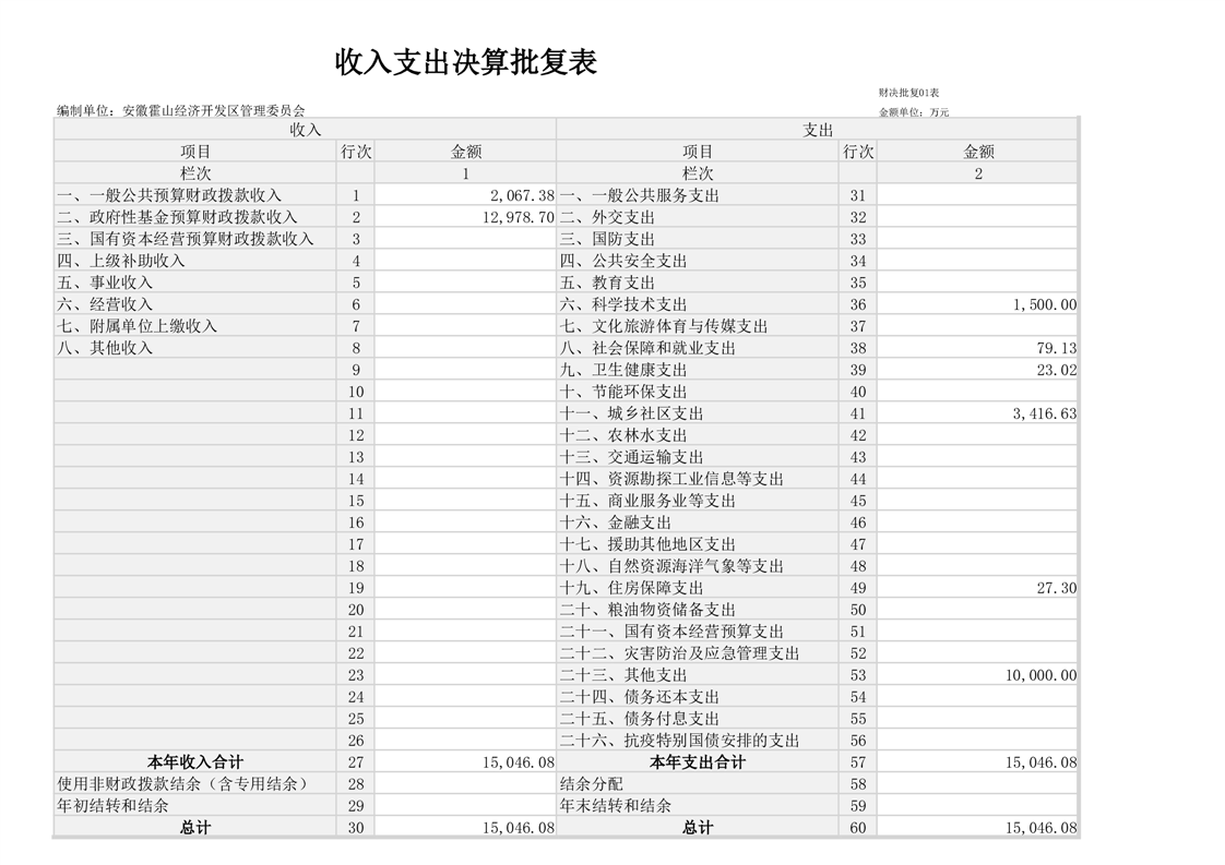 安徽霍山经济开发区管理委员会2024年度收入支出决算表