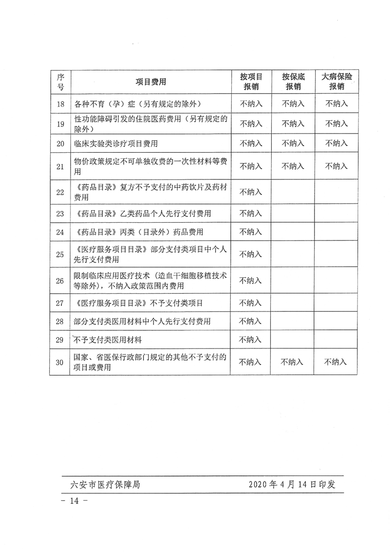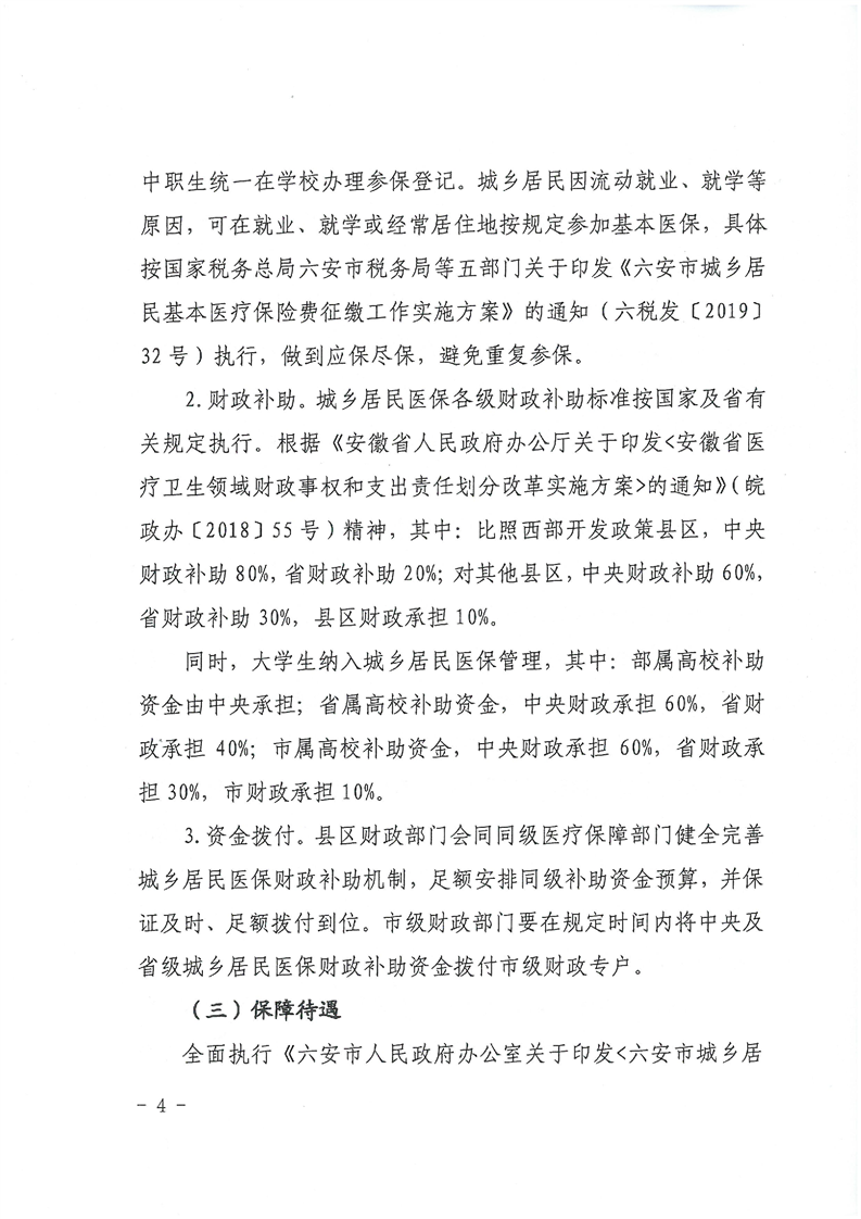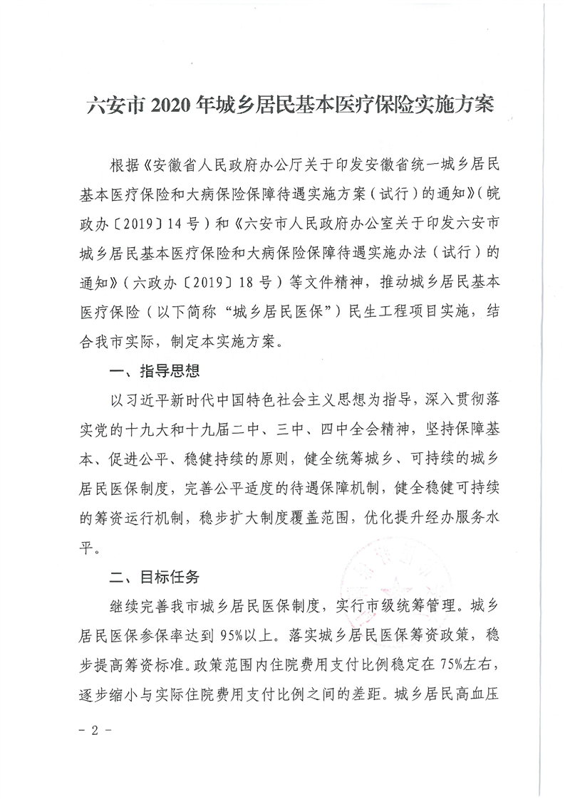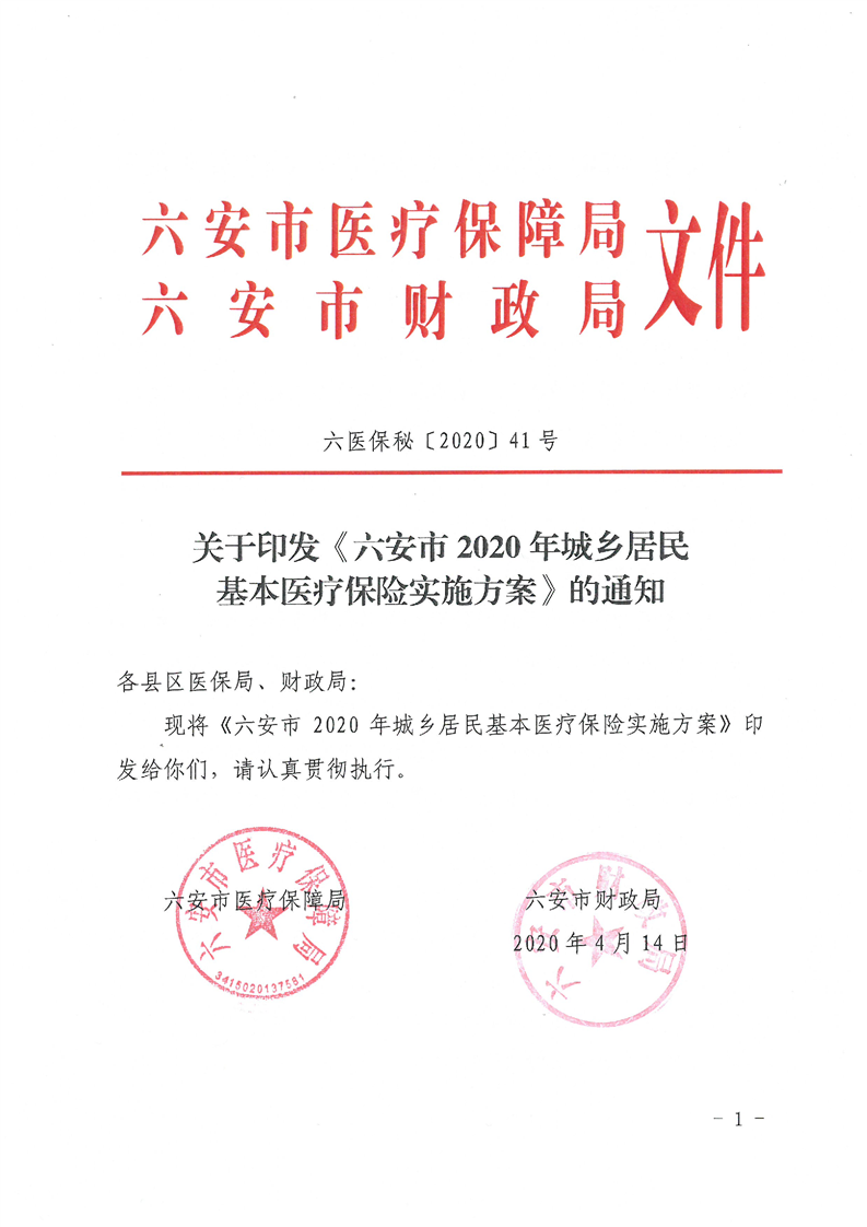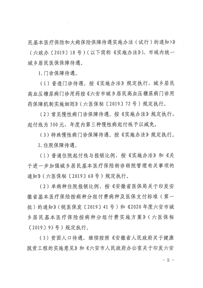 关于印发《六安市2020年城乡居民基本医疗保险实施方案》的通知