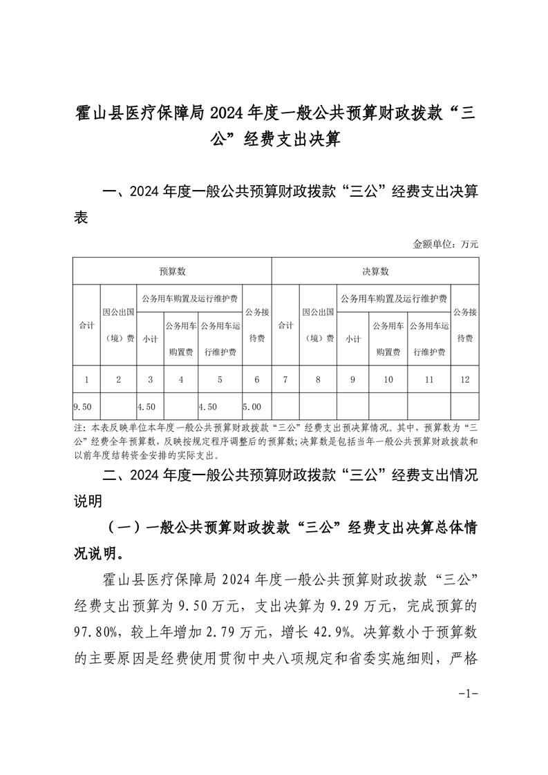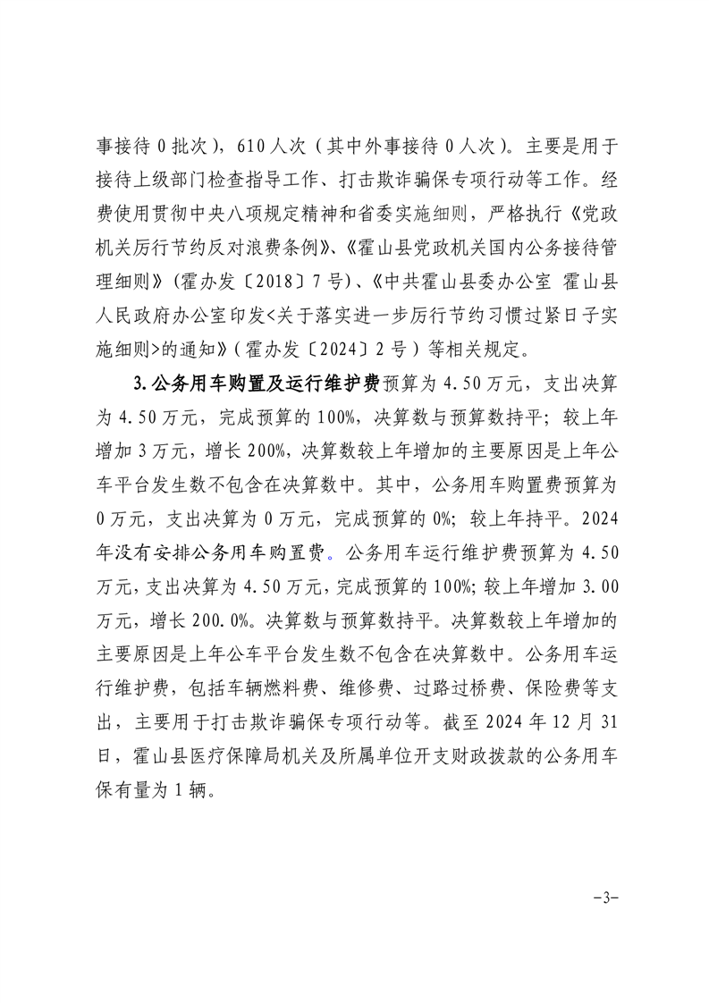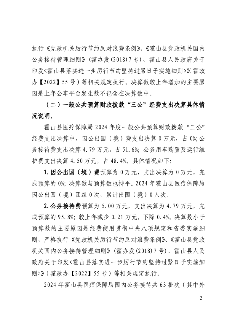霍山县医疗保障局2024年度一般公共预算财政拨款“三公”经费支出决算