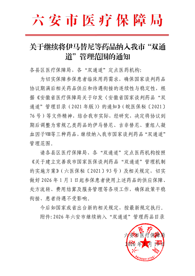 关于继续将伊马替尼等药品纳入我市双通道药店管理